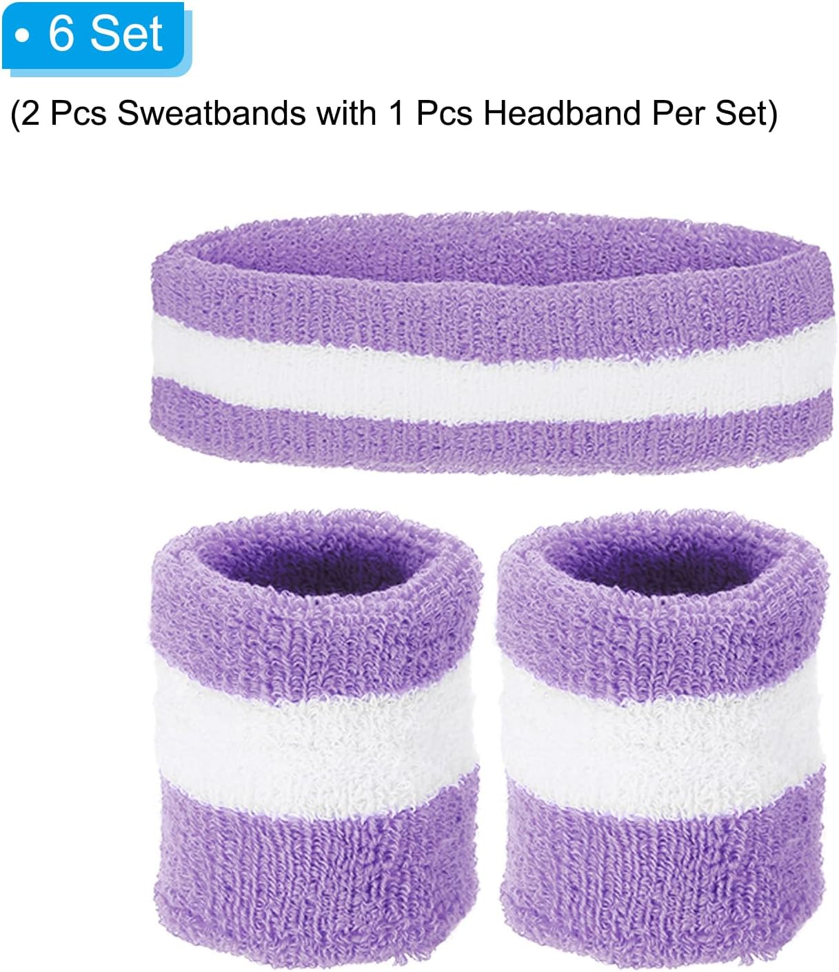 Wrist sweatbands and headband set absorb sweat to help you stay cool and dry when exercising, yoga, running track, walking, cycling or playing sports like basketball, tennis, golf, football, baseball, gymnastics, badminton, cycling, bowling, weights, boating, running, etc.Advantage:Made of soft cotton terry cloth fabric, which is air-permeable, moisture-wicking, good elasticity, and comfortable to wear, gentle on the skin washable and reusable. It can improve the stress on the wrist joint, and relieve the pressure in exercise.Instruction:Athletes wear wristbands primarily to absorb and prevent sweat from arms and body from running onto their hands, slick hands can lead to decreased grip and won't let sweat drip into your eyes.Notice:Although the sweatbands might cause increased perspiration, they don't allow the sweat to evaporate and cool your body.