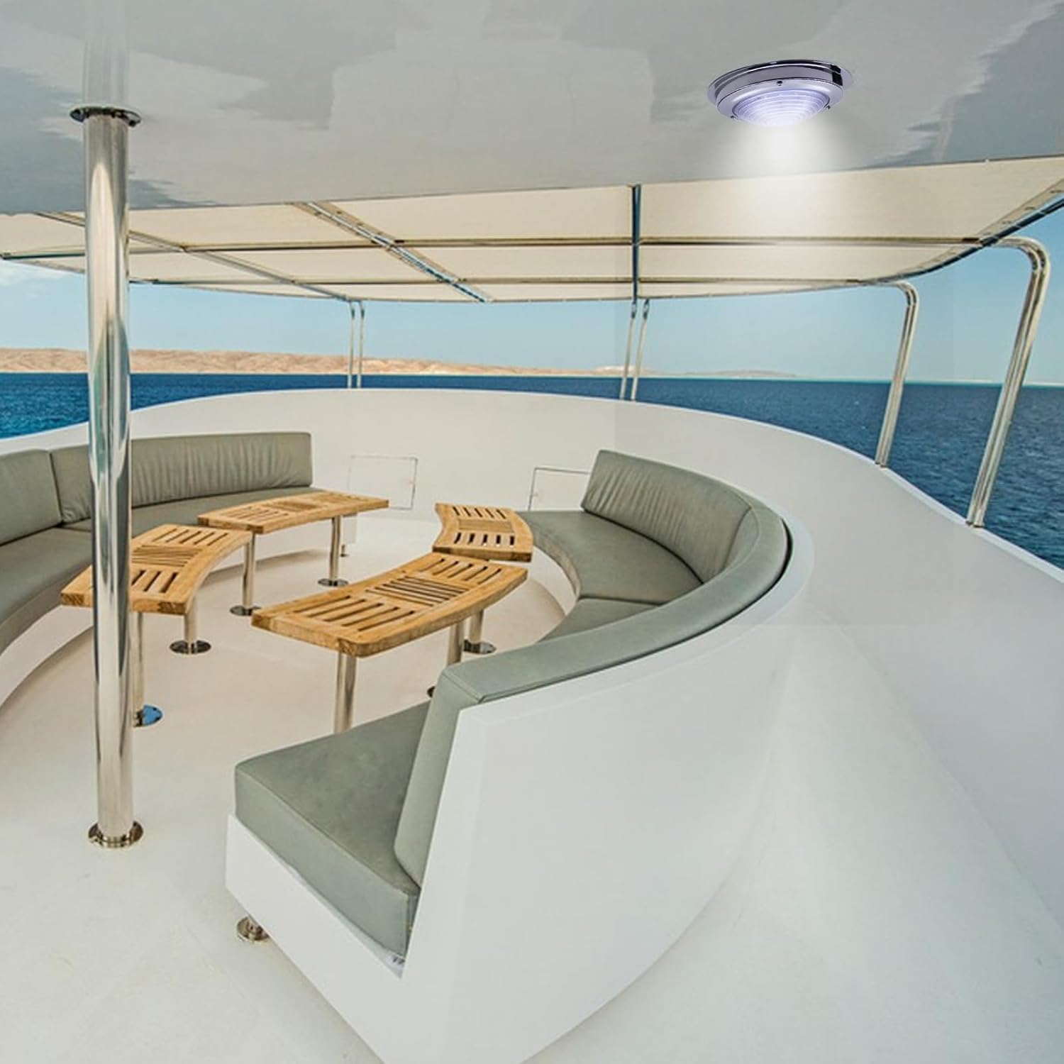 Specification: Working voltage: 12 Volts DC Light Color: White, Red Material: Stainless Steel + Polycarbonate Wattage: 3.2 Watts LED Beam Angle: 120 degrees Operation Temperature: -20℃~ +45℃ Housing Diameter: 7 inches Package Includes: 1* Led Boat Dome Light
