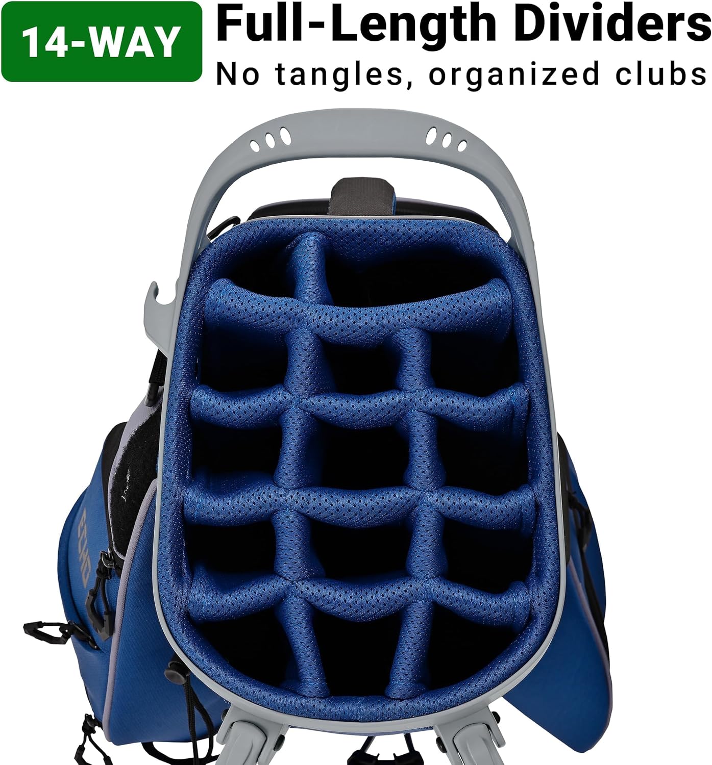 14-Way Full-Length Divider Top Auto-Adjusting Dual Shoulder Strap System External Putter Clip Quick-Access Magnetic Pocket Lightweight Support Legs