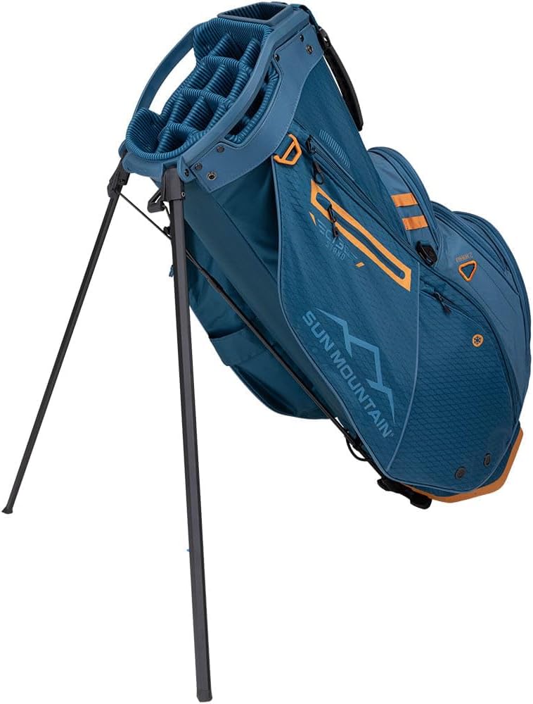 The C-130S is adapted from our best-selling C-130 cart bag. Designed primarily for cart use, the C130S has a stand system added for the range. Cart-friendly features include a leg-lock system, a quick-release carry strap, a cart strap tunnel which allows full pocket access when the bag is on a cart and a cart-friendly bottom that fits nicely in riding cart bag wells.
