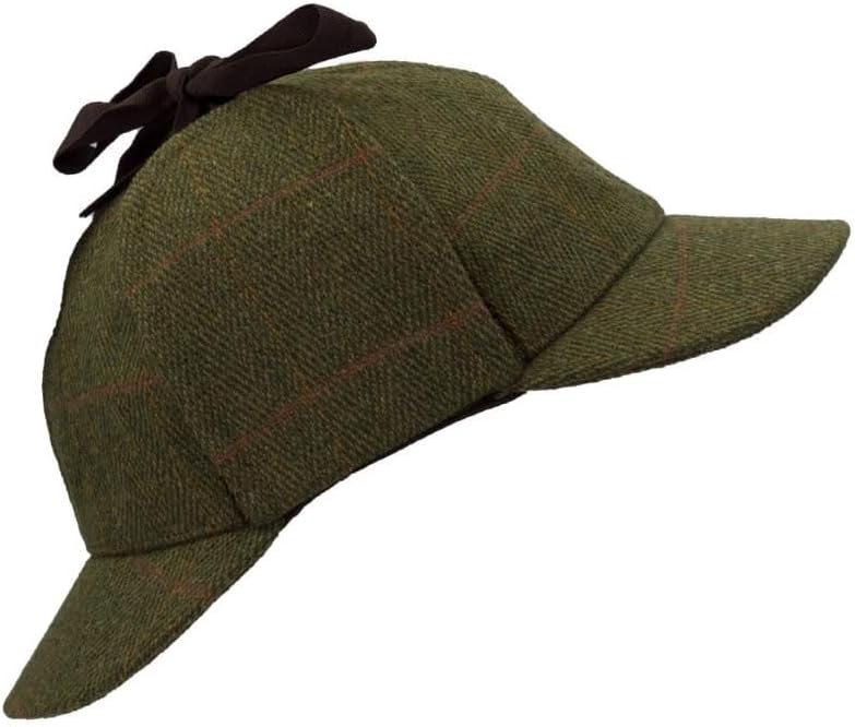 Synonymous with Sherlock Holmes, the literary hero of Sir Arthur Conan Doyle's detective series, the Deerstalker was originally designed, as the name suggests, for those who stalked deer on the moors. Ours is crafted from 60% wool tweed, and finished with ear flaps and a smart grosgrain ribbon. Outer jacket (shell) is made from 60% wool, 25% polyester, 11% acrylic and 4% composed of other fibers, making this cap of top quality fabric. Main features are a pair of semicircular visors worn in front and rear, a pair of unstiffened cloth earflaps attached to either side of the cap, tied together by grosgrain ribbons. Dual bills provide protection from the sun for the face and neck of the wearer during extended periods out of doors, such as for hunting or fishing. The earflaps, tied under the chin, provide protection in cold weather and high winds. They are otherwise tied together above the crown to keep them out of the way. Produced to the highest standards by a manufacturer of top quality countrywear and derby clothing. The tweed has been treated with teflon, which acts as a fabric protector, making this product long lasting-lasting protection against oil- and water-based stains, dust and dry soil. Please check our size guide against your cap you wish to purchase.