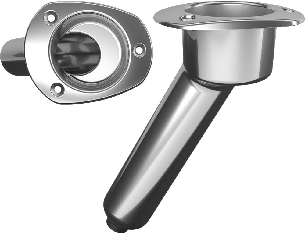The Mate Series Stainless Steel 30° Rod & Cup Holder with oval top and drain provides angled storage for fishing rods and beverages while allowing water to drain. Its corrosion‑resistant stainless steel construction ensures durable, long‑lasting performance in marine environments.