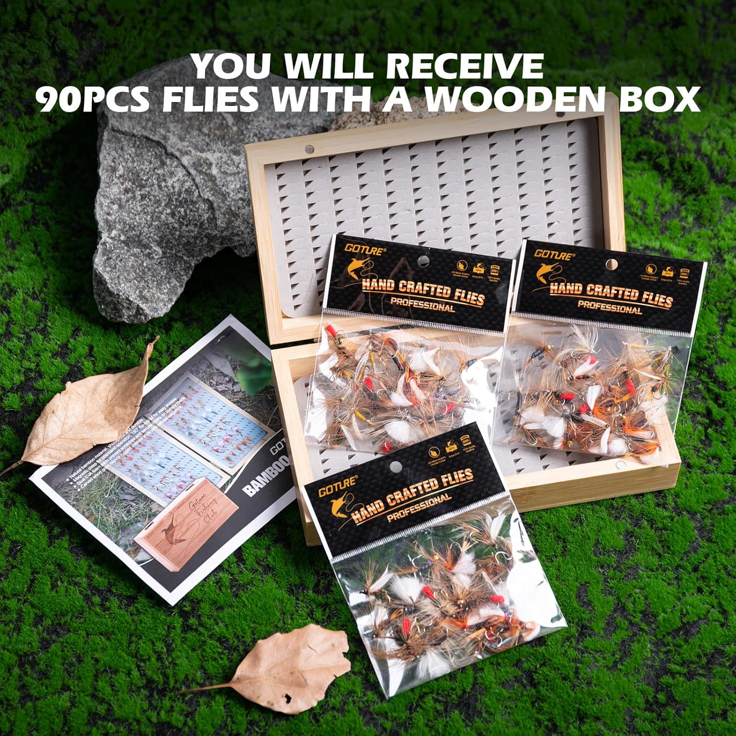Goture Fly Fishing Flies Kit,25pcs/30pcs/100pcs Fly Fishing Lures,Dry Flies Wet Flies Streamers Nymphs Flies, Fly Fishing Assortment Kit for Bass Trout Salmon Fishing