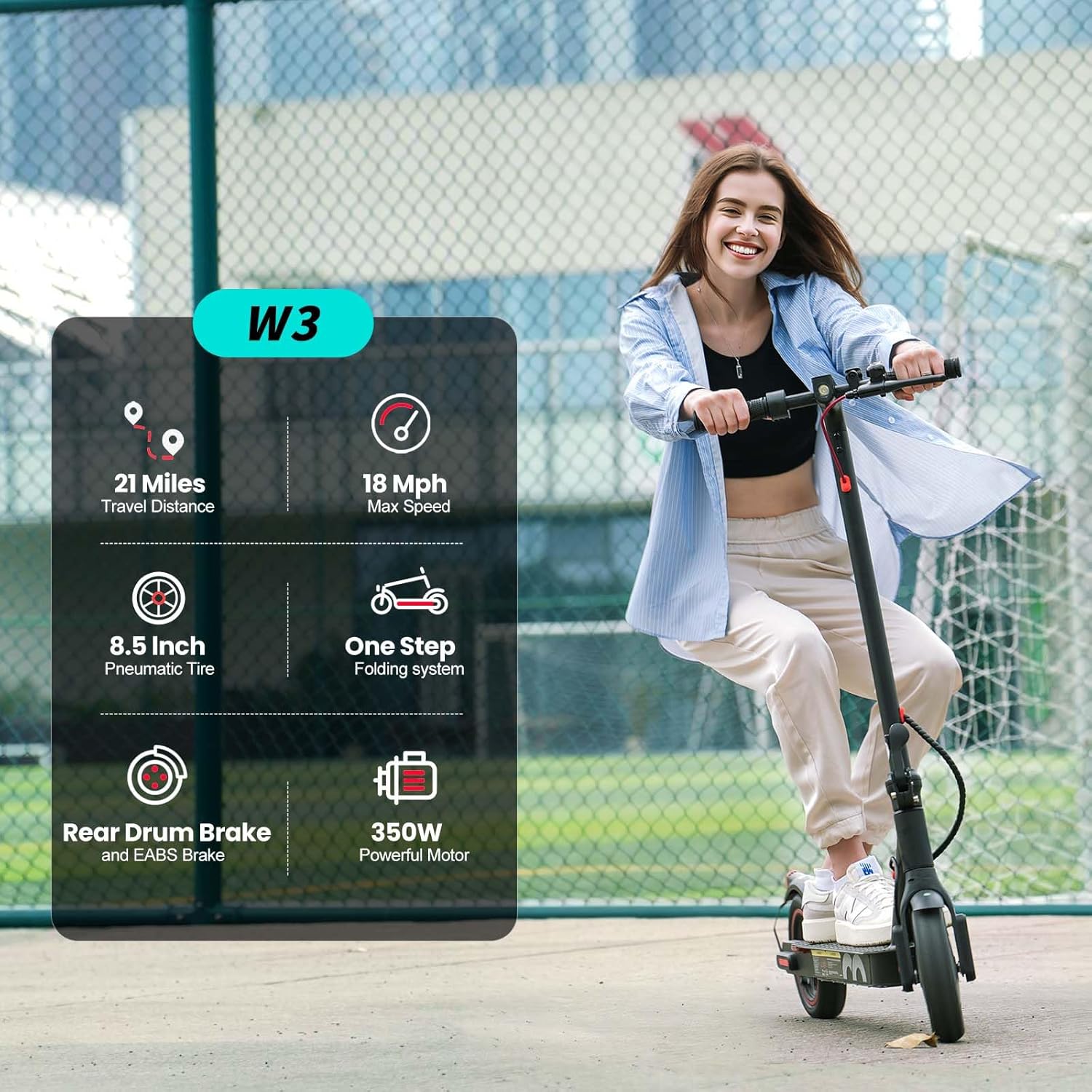 Electric Scooter 350W Powerful Motor for Adults, 18 MPH Top Speed, 8.5" Pneumatic Tires, Smart App
