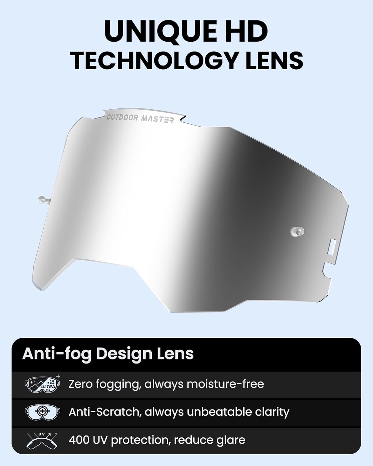 OutdoorMaster Macaw dirt bike motorcycle goggles with OTG capability, 100% UV protection ATV goggles, help you enjoy your journey.