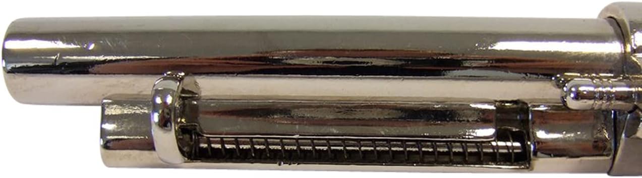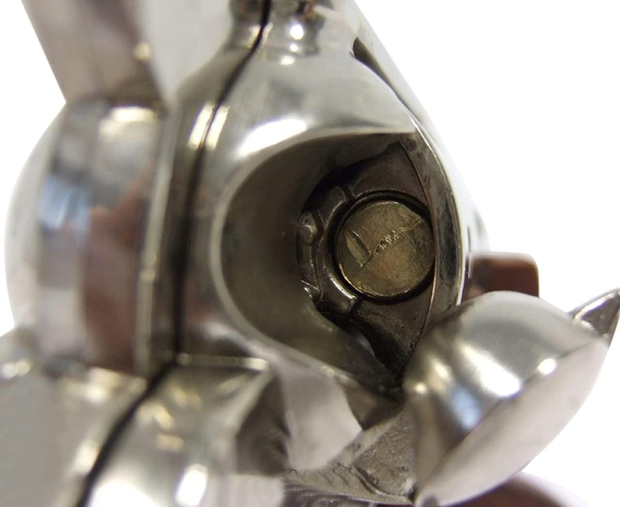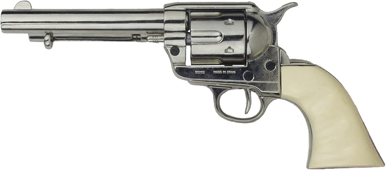 Measures 11" overall. 5 1/2" nickel finish with faux ivory grip. Non-firing replica. Fires 6 pull off caps (not included). Museum quality historical replica. Authentic size and weight of actual gun. Cannot be altered to fire live rounds.