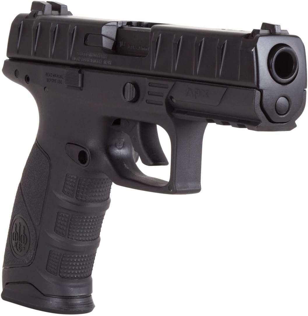 Beretta APX Blowback Air Pistol Combo CO2 19 round drop free magazine Semi-automatic Blowback action Metal slide Polymer frame Picatinny rail Double action trigger Includes 100 ct paper targets Includes (12) 12-gram CO2 cartridges Includes precision steel BBs 5.1 grains,1,500 ct. ... REAL blowback action... .