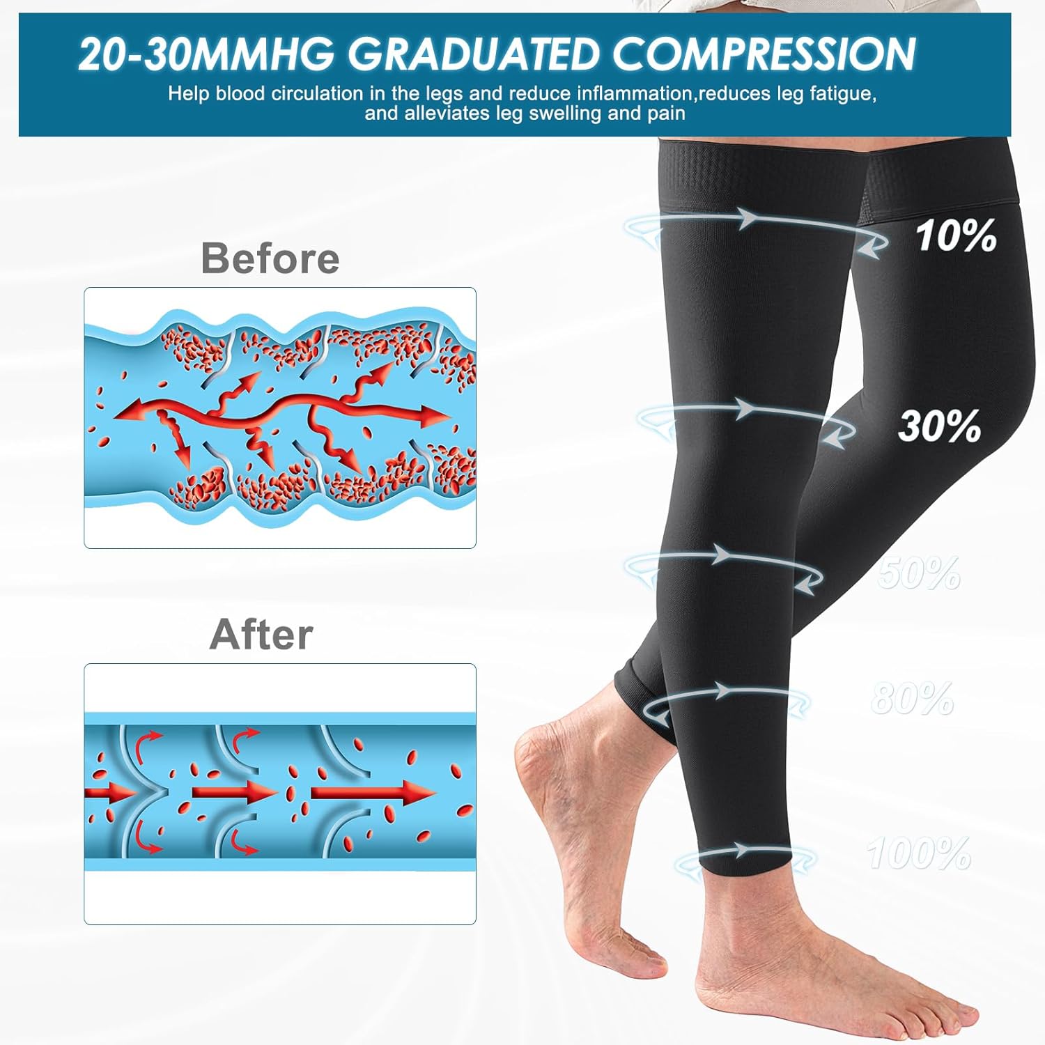 DCCDU Compression Stockings 20-30 mmHg – Graduated Support for All-Day Comfort & Leg Health Experience the perfect balance of medical-grade support and everyday comfort with DCCDU's 20-30 mmHg compression stockings. Designed with a seamless circular knit, they offer a soft, silky feel and a lightweight, fashionable look—so you can feel confident while caring for your legs. Key Features: 1. Precision Compression Technology Just like leading medical brands, we take 4–6 compression measurements at precise intervals from ankle to thigh. This ensures an accurate pressure gradient that boosts circulation, reduces swelling, and helps prevent tired, achy legs—all while supporting leg health with physician-prescribed elastic compression therapy. 2. Advanced Comfort & Moisture Control Our Absolute Advanced Comfort fabric wicks moisture away from your skin to the outer layer, where it quickly evaporates. This keeps you cool, dry, and comfortable—even during long hours of wear. 3. Relief for Common Leg Issues Ideal for preventing and relieving symptoms of spider veins, mild varicose veins, ankle swelling, edema, and leg fatigue. The graduated compression also offers a gentle shaping effect for a smoother look. 4. 3D Ergonomic Design & Easy Wear Crafted from high-elastic micro fiber that’s delicate, strong, and velvety-soft. The 3D knit fits your leg perfectly without rubbing at the heels, while the soft yarn construction makes these stockings easy to put on and take off. 5.Care Instructions To maintain elasticity and performance, we recommend hand washing in warm water with mild soap after each use. Gently rinse and squeeze—do not twist or wring. Air dry away from direct heat. Do not machine wash or tumble dry.