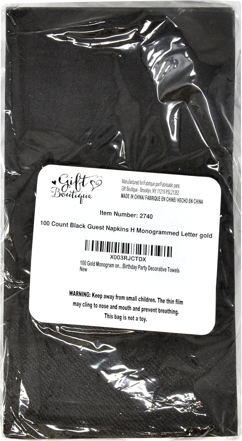 Monogrammed Guest Napkins Serves 100: Gift Boutique rectangular monogram guest napkins features the letter G printed in gold foil on black. These napkins will definitely enhance your table and impress your guests. These are essential for providing guests high-end comfort and luxury. Measures: 7.5" x 4.25" folded and 15" x 12.75" unfolded. For Gatherings & Special Events: Perfect for 50th anniversaries, birthday parties, tea gatherings, and wine tasting. Flawless napkins for wedding reception, engagement and graduation parties, Christmas dinner, New Years Eve, fancy restaurants, holidays, bridal shower, baby shower, hearty lunch and more! Treat your guests with all the attention they truly deserve! High Quality: Napkins are made of high quality thick paper. Napkins are soft and absorbent & dry your hands quickly. These personalized napkins will be great for any party. The metallic gold G initial party napkins really adds dimension to your parties as your guests will love the pretty design. Enough For Your Guests: Stock up with these gold foil and black napkins so you can be assured that you will have enough for all your guests who will attend your party. Serve dinner to guests in catering, buffet, potluck, events or daily meals. More Time To Enjoy: Disposable paper reduces clean-up time so you can enjoy more time with friends and family. Perfect for your own house or as a gift for a friend. Ideal for dinner table placement, office, party decor, powder room, bathroom vanity, kitchen counter top and guest bathrooms.