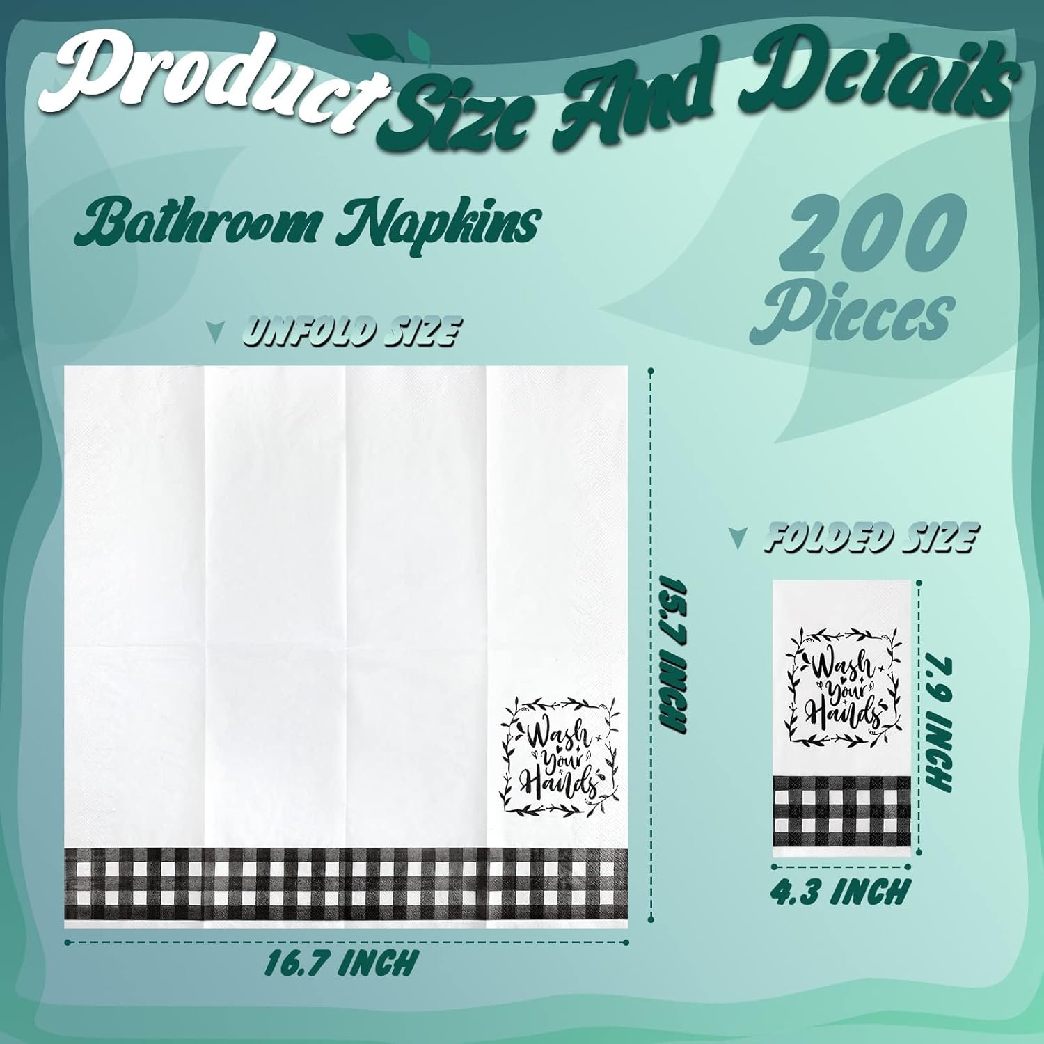 Features: Our paper hand towels are comfort and absorbent, you can dry your hands completely and quickly, more delicate and convenient than common disposable napkins. Elegant napkins serve 200 pieces, ideal for dining tables, offices, party decorations, dressing rooms, bathroom cabinets, kitchen counter tops and guest bathrooms. Specifications: Material: paper and printing ink Color: white and black Size: approx. 20 x 10 cm/ 7.9 x 3.9 inch folded, 40 x 40 cm/ 15.7 x 15.7 inch unfolded Package Includes: 200 x Hand towel paper napkins Notes: Manual measurement, please allow slight errors on size. The color may exist a slight difference due to different screen displays.