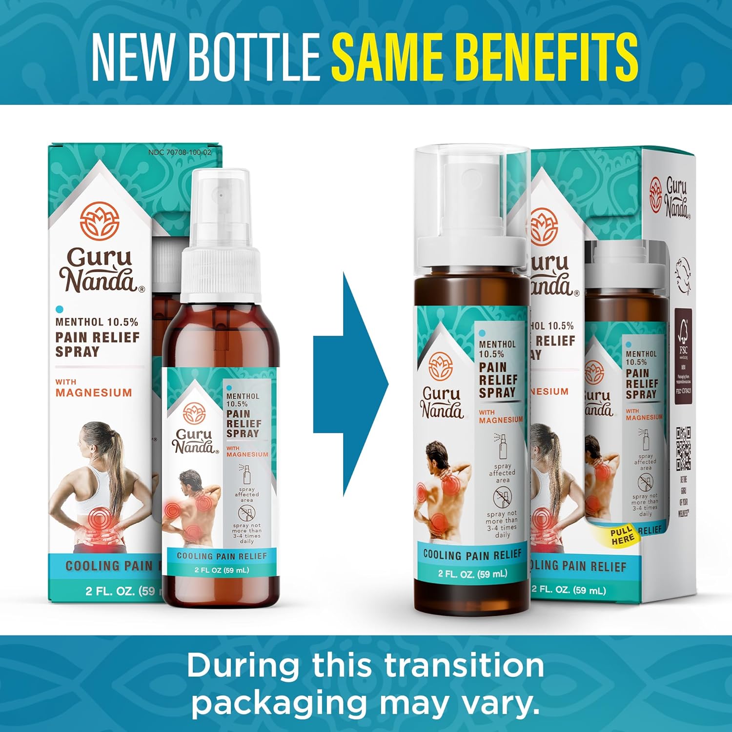 Experience instant cooling relief with GuruNanda Menthol Pain Relief Spray with Magnesium. Powered by 10.5% menthol, this fast-acting topical spray delivers a refreshing, cooling sensation that temporarily eases minor muscle and joint pain. Enhanced with magnesium, it helps relax muscles and support recovery. The no-touch spray format allows for easy, mess-free application—ideal for post-workout soreness, backaches, strains, and everyday aches. Safe to use up to 3–4 times daily, it's the perfect solution for on-the-go relief and daily comfort.