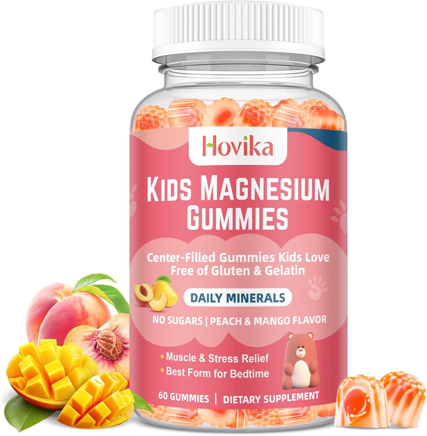 | Product Benefits | Our Kids' Magnesium Gummies are a fun, tasty way to support your kids health. Packed with essential magnesium development. Promotes sleep and calm, gluten-free, Non-GMO, no artificial colors. |