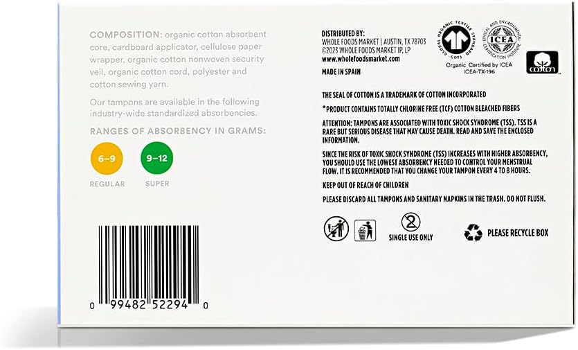 | Tampon Absorbency | Regular, Super |