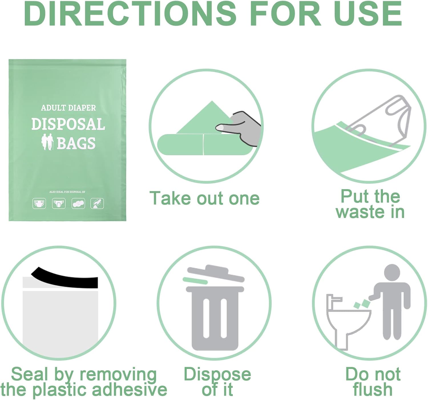 | Included Components | 100 x Adult diaper disposable bag |
