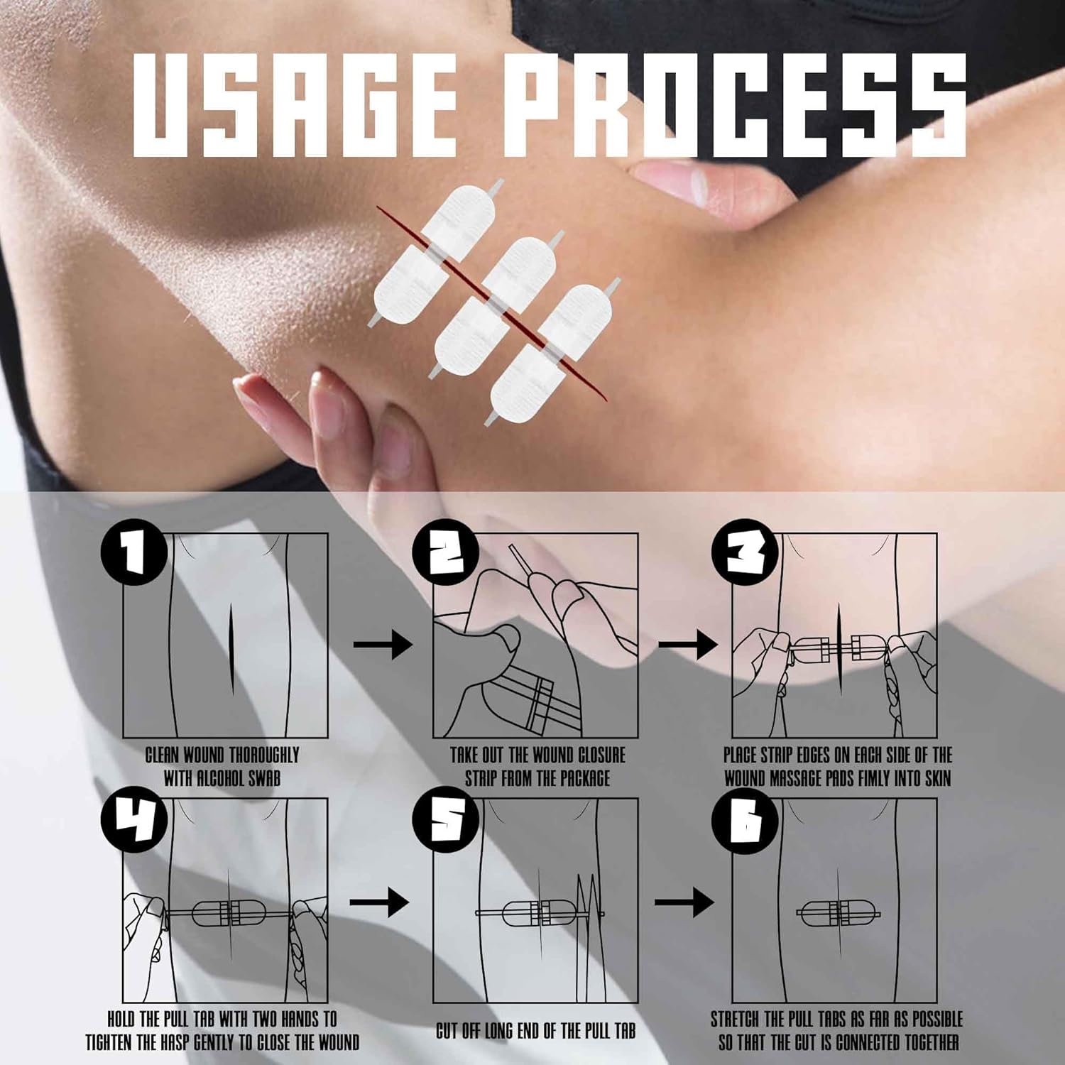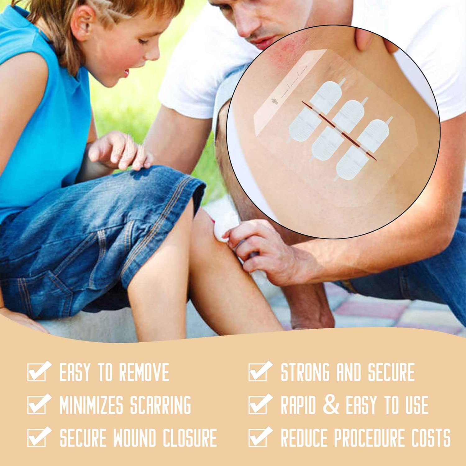 Wound closure strips kit set-When you're far from medical assistance, our wound closure strips kit provides a reliable solution to protect you and your family from skin damage. Designed for emergencies, this device allows you to easily and quickly close cuts non-traumatically, wherever you are. After healing, you can simply peel the strip like a dressing from your skin. Ideal for personal use during outdoor activities like hiking, camping, fishing, hunting, or biking, these strips can be counted on to save precious time when every second counts. With this kit on hand, you'll be prepared for unexpected situations and minor injuries. Ifak Trauma Kit Reill Supplies Must Have: Use our wound closure device, which is suitable for various types of wounds such as lacerations, cuts, and surgical incisions, whether dealing with minor injuries in the outdoor or at home, school, or work. Our wound closure kit provides reliable and safe closure, minimizing scars and promoting faster healing