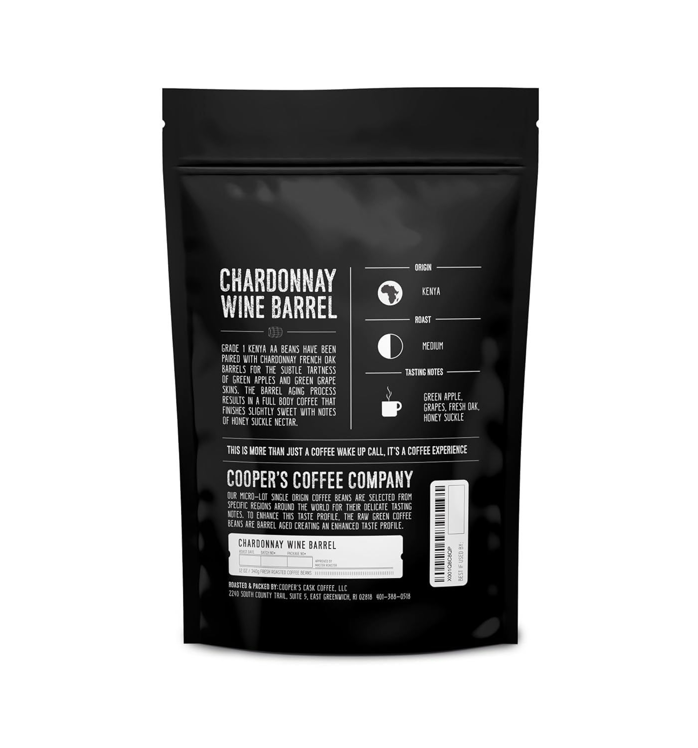 Indulge Your Senses, Kickstart Your MorningCooper's is a small batch coffee that is roasted and sold locally. Searching for a tasty and rejuvenating coffee that makes you look forward to waking up in the morning? The Bucks not working for you? You owe it to yourself to try the earth's finest Wine Barrel Aged flavored coffee from Cooper’s Cask Coffee. Created by Master CraftsmenThere’s only one way to ensure you’re getting the highest-quality barrel aged coffee available; go straight to the master craftsmen for some old fashioned goodness! Once you've tasted the distinct but subtle flavors, you’ll know you’ve finally found the coffee that can bring you all the pleasure you expect from this widely acclaimed indulgence. What Kind of People Choose our Coffee?Serious coffee connoisseurs demand the best. That's why we source the highest quality coffee beans in the world. while working with wine, rum and whiskey companies who share our total commitment to coffee. The Cooper's GuaranteeWe’re pretty picky when it comes to our coffee beans, and we go to great lengths to find premium single-origin coffee beans and classic wine, whiskey and rum to pair them with that meets our exacting standards. If you’re not 100% satisfied with Cooper's Cask Coffee, ask for a refund with in 30 days or free exchange. That's it! Taste ProfileCHARDONNAY PAIRED WITH SINGLE ORIGIN KENYA BEANS: A subtle tartness of green apples and green grape skins. A full body coffee that finishes slightly sweet with notes of honey suckle nector.