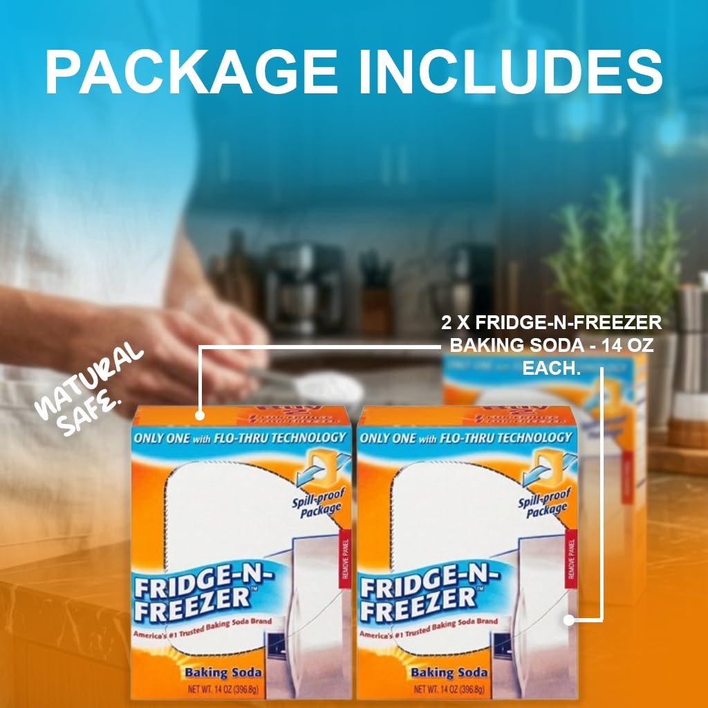 Keep your refrigerator and freezer smelling fresh with this 2-pack of 14 oz baking soda. Designed as a natural and safe odor absorber, it effectively neutralizes unwanted food odors, ensuring your kitchen appliances stay clean and pleasant. Each box can be placed directly in your fridge or freezer, providing continuous odor control without the use of harsh chemicals. The convenient 2-pack ensures you always have a replacement on hand, promoting consistent freshness. Ideal for homes, offices, dorms, or any space where refrigerators and freezers need reliable odor management, this baking soda solution is an eco-friendly and cost-effective choice for maintaining a clean and hygienic environment.