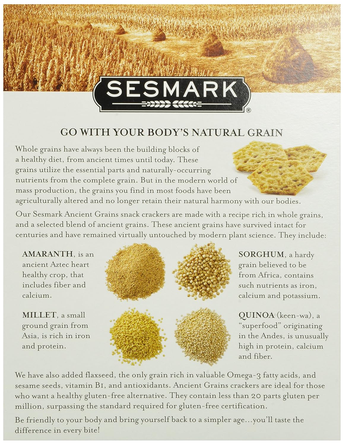 Sesmark crackers burst with robust flavor in a base of healthy grains, including wheat, rice and corn. Our knowledge of the abundant health benefits of sesame -- high in protein, a good source of calcium, magnesium, iron, phosphorous, vitamin B1, zinc, dietary fiber and antioxidants – fashions crackers full of flavor and good for you. Sesmark crackers were first sold to neighborhood stores and delis. Discerning consumers quickly embraced the brand’s fresh, authentic taste, sesame based hearty flavors and unique crunch. Since the crackers are so flavorful, they need not hide under dip, spread, or cheese. As a result, Sesmark is perfect for any occasion snacking. A unique baking process produces a thin, crispy, delicious cracker. For over 25 years, Sesmark has baked crackers that are free of trans fats, hydrogenated oils, cholesterol, and preservatives. Sesmark crackers always sound as great as they taste because there’s nothing in them but a satisfying, flavorful crunch.