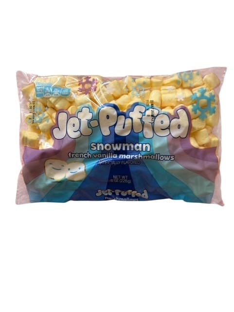 2 x Puffed Holiday Favorite Winter, Mini Peppermint and French Vanilla Snowman Marshmallows, 8 oz Bags Indulge in the festive flavors of the holiday season with these delightful Jet-Puffed mini marshmallows. At 8 oz. respectively, these bags provide ample portions for all your holiday baking and snacking needs. Soft, fluffy, and bursting with flavor, these mini marshmallows are sure to become a cherished part of your holiday traditions.