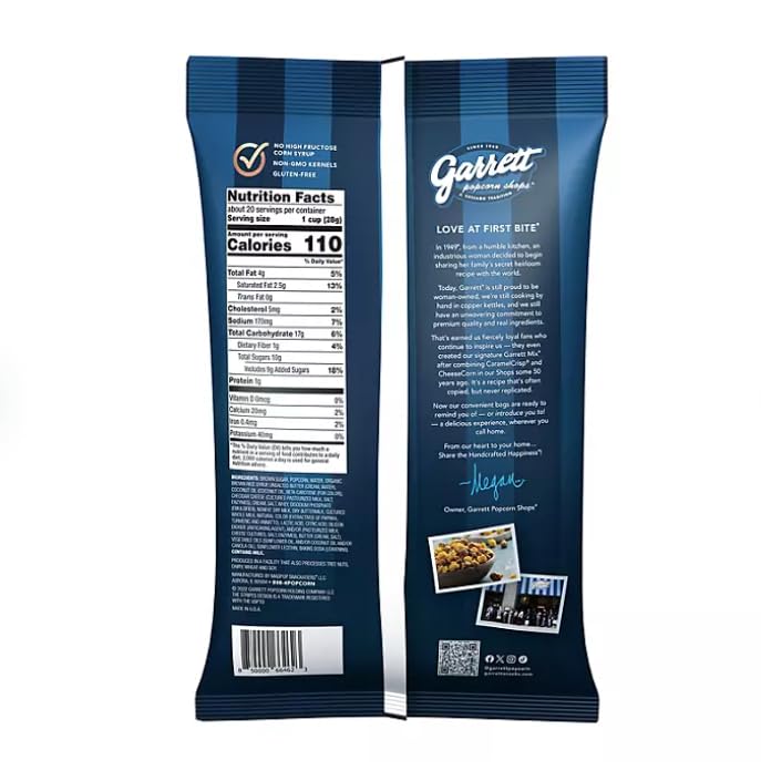 Indulge in the irresistible taste of Garrett's Popcorn Shops, a Chicago tradition since 1949. These delectable treats are crafted with real ginger, nutmeg, and fresh cinnamon, infusing every bite with the warmth of the holiday season. Made from scratch in small batches using only the finest ingredients, these crunchy popcorn clusters are a true delight. At 20 oz per bag, you'll have plenty to share or savor all for yourself. Garrett's Popcorn Shops are a perfect snack for cozy movie nights, festive gatherings, or as a thoughtful gift. Experience the authentic flavors of a Chicago classic with every mouthwatering bite
