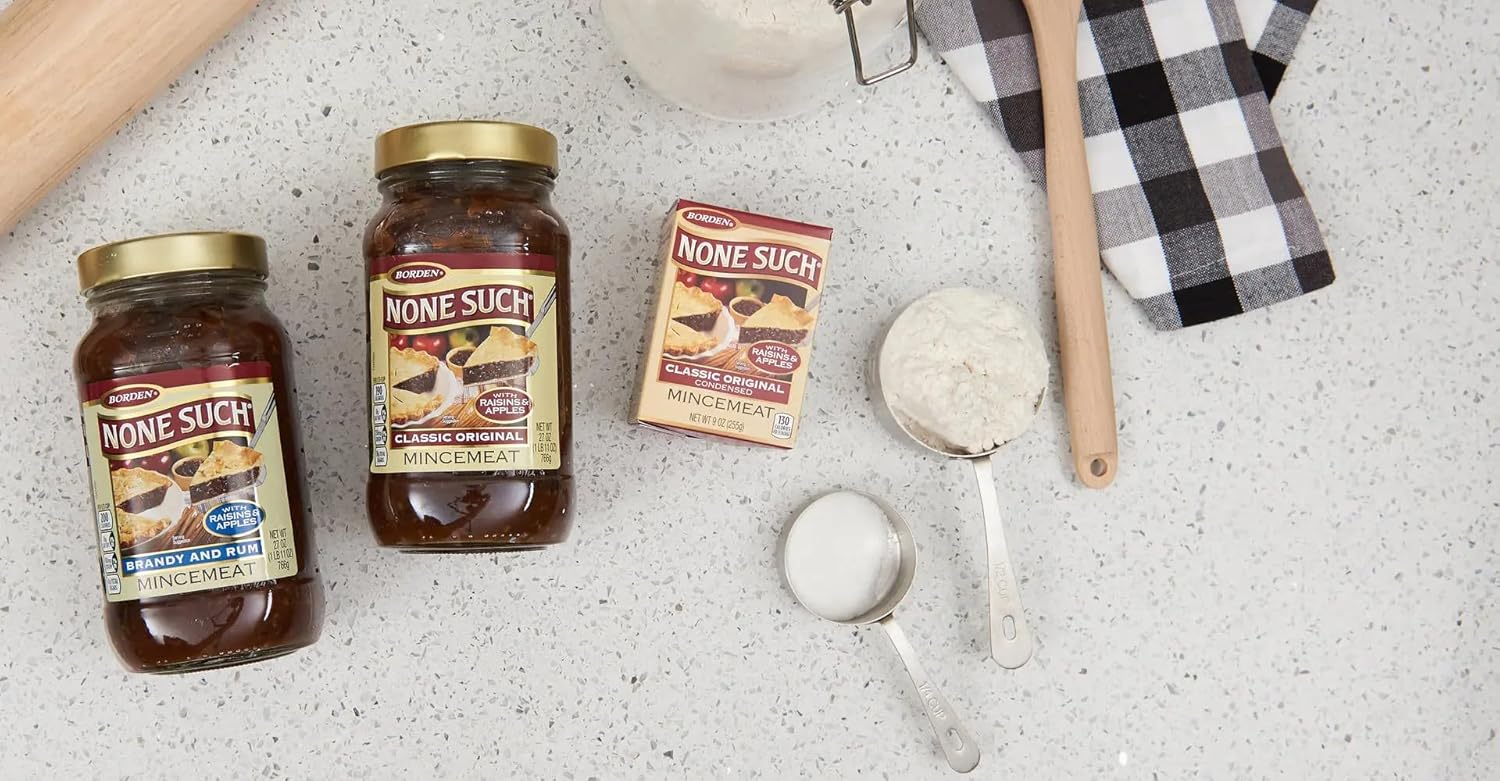 Since 1885, None Such Mincemeat has been a cherished pantry staple, bringing rich, old-world flavor to pies, tarts, cookies, and holiday desserts. Our Brandy & Rum Mincemeat combines apples, raisins, citrus peel, sugar, and warming spices with a spirited splash of brandy and rum for a bold, festive taste.Mincemeat traces its roots to medieval England, where it was served at royal feasts as early as 1413 during the coronation of Henry V. Over the centuries, the recipe evolved into a sweet fruit-and-spice blend, brought to Colonial America as a holiday delicacy. By the late 1800s, None Such made high-quality mincemeat available year-round, first in wooden buckets and later in glass jars, making it one of America’s earliest convenience foods.Today, we continue that tradition with the same dedication to quality, authenticity, and flavor. Our mincemeat requires no preparation—all the peeling, chopping, and stirring has been done for you. Simply open the jar and enjoy in classic pies, holiday pastries, puddings, muffins, and modern desserts. You can even spoon it warm over ice cream, cheesecake, or pound cake for a quick and festive treat.Packaged in a 27 oz glass jar, None Such Brandy & Rum Mincemeat is gluten-free, dairy-free, and soy-free, making it a versatile choice for every family. For over 135 years, None Such has been more than just a dessert filling—it’s a holiday tradition passed down through generations.Welcome back, mincemeat.