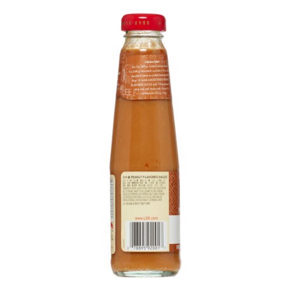 Lee Kum Kee Peanut Flavored Sauce, 8-Ounce Bottle (Pack of 4), Packaging may vary. A sweet peanut-flavored sauce used in preparing Northern Chinese cold dishes, salads and noodles. Ingredients Water, sugar, peanut paste, soy sauce (water, salt, soybean, wheat flour), rice vinegar (contains wheat), sesame oil, salted chili pepper, (chili, salt), spice, salt, modified corn starch, acetic acid, xanthan gum (contains wheat and soybean), monoglyceride.
