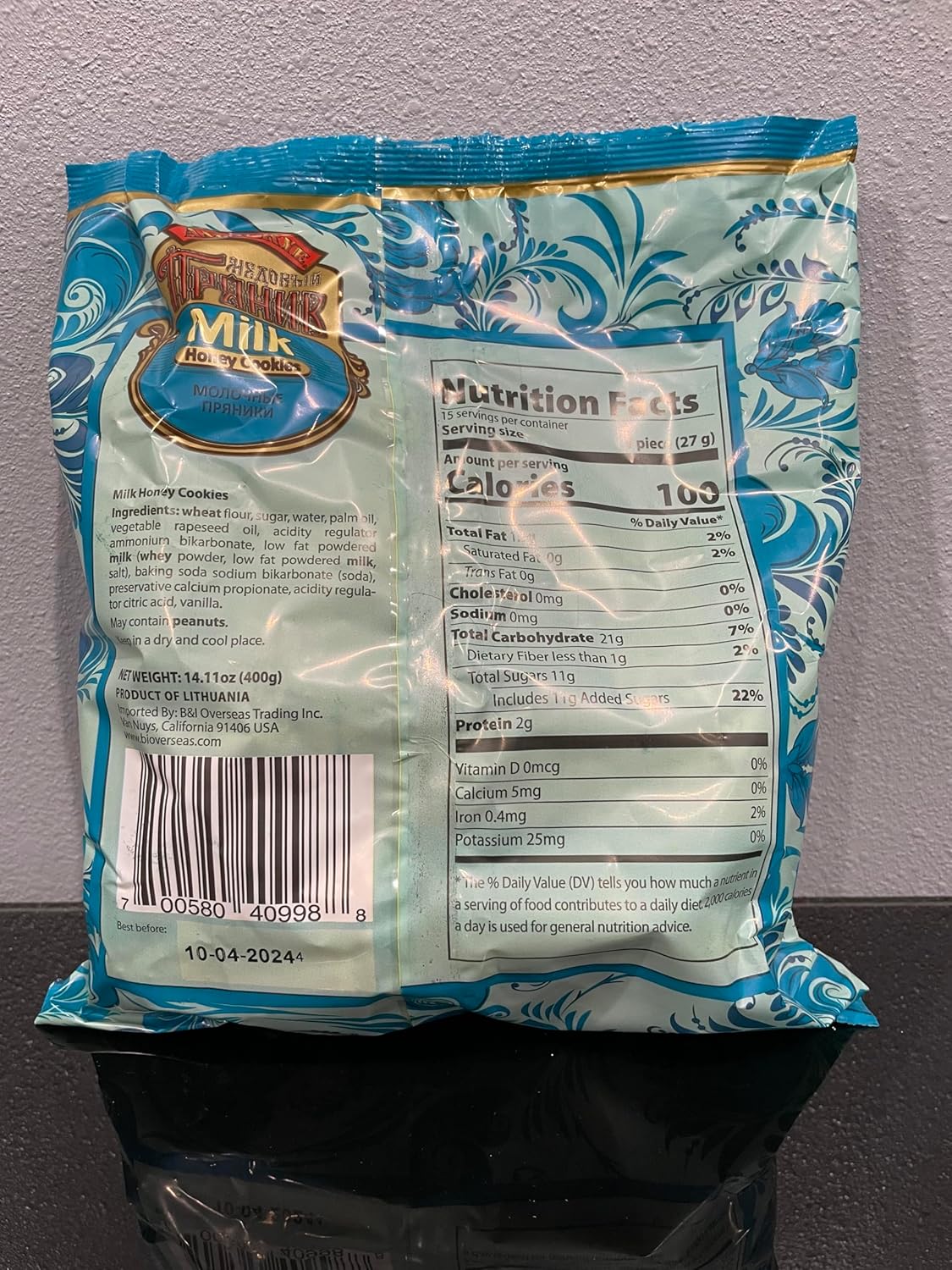 These delightful vanilla and honey cookies are a sweet treat from Lithuania. Made with wheat flour, sugar, water and real vanilla, AmbeRye Prianiki cookies have a light and crispy texture wrapped around a soft center infused with honey. At just under 1 pound, this 400g package contains dozens of bite-sized cookies that are perfect for enjoying with a hot cup of tea or coffee. With ingredients like palm and vegetable oils, these cookies have a subtle natural sweetness without being overly rich. Gluten-free and containing no artificial colors or flavors, Prianiki are a wholesome indulgence you can feel good about. Enjoy!