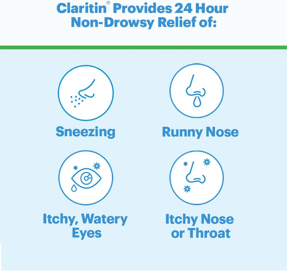 Children's Claritin Chewable Tablets, in grape flavor, provide effective, 24-hour allergy relief of your child’s allergy symptoms, like sneezing, runny nose and itchy, watery eyes.Antihistamine. For children ages 2+. Each tablet contains 5 mg of loratadine.Covered by the Bayer HealthCare LLC – Consumer Health 60-Day Satisfaction Guarantee. See below for details
