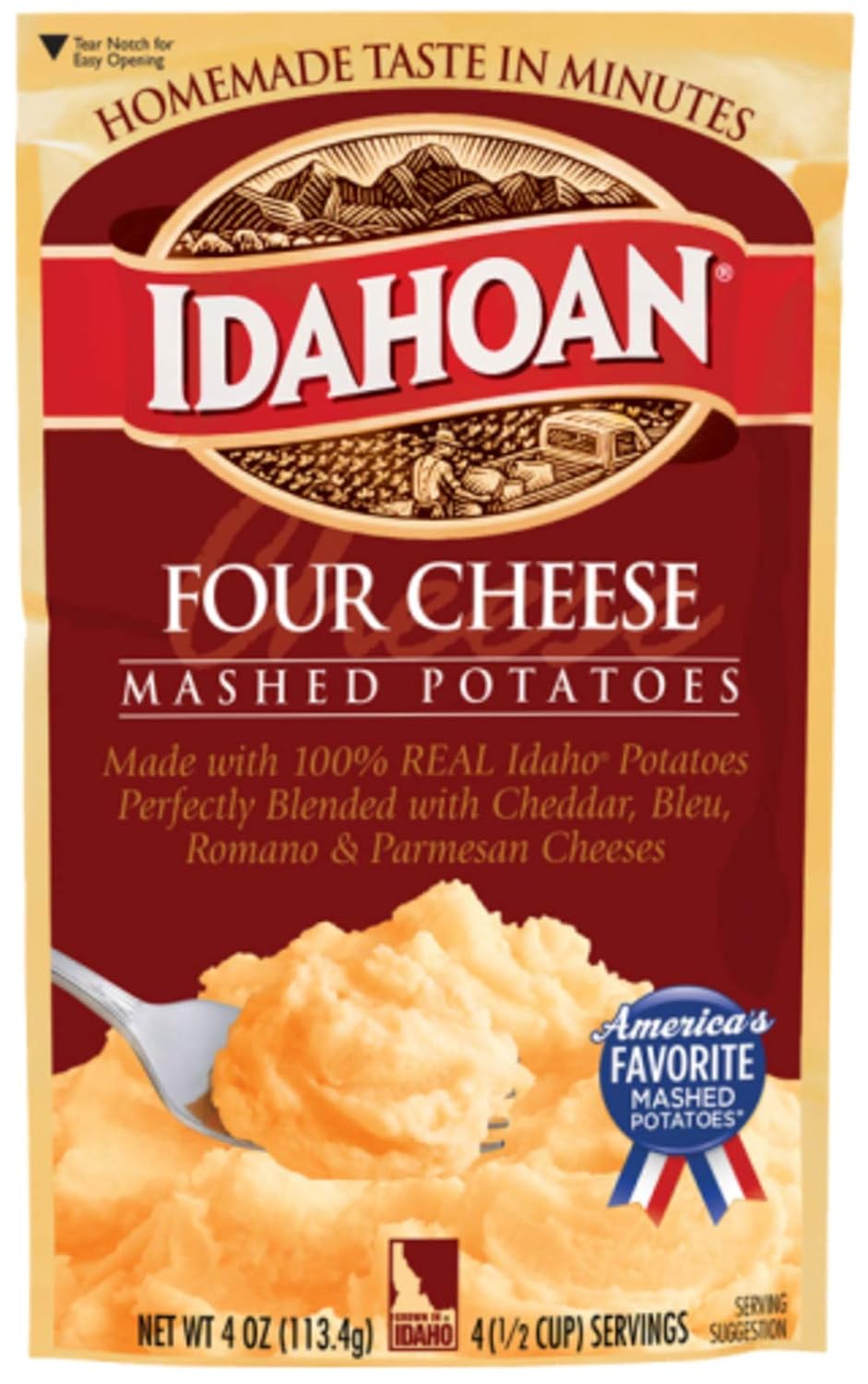 Whip up delicious, rich mashed potatoes in minutes with Idahoan’s Flavored Mashed Potatoes! Our 12-count variety pack includes four of Idahoan’s most popular flavors: Buttery Homestyle, Roasted Garlic, Four Cheese, and Loaded Baked Potato. Perfect with nearly any home-cooked meal, our delicious flavored mashed potatoes are easy to prepare and ready in minutes. Idahoan mashed potatoes are made with 100% Real Idaho potatoes and are a great part of any wholesome meal. Each order includes one 12 pack variety box with 3 pouches of each flavor. Whether you’re looking for your traditional comfort food, or wanting new excitement in your life, Idahoan delivers. Since 1951, Idahoan’s mission of innovation continues to bring you quality 100% REAL Idaho potatoes in all the ways you love. Whether it’s quality mashed potatoes, soups, casseroles or hash browns, in a pouch, bowl, cup or more, Idahoan Foods will continue to bring you Homemade Taste—Every Time.