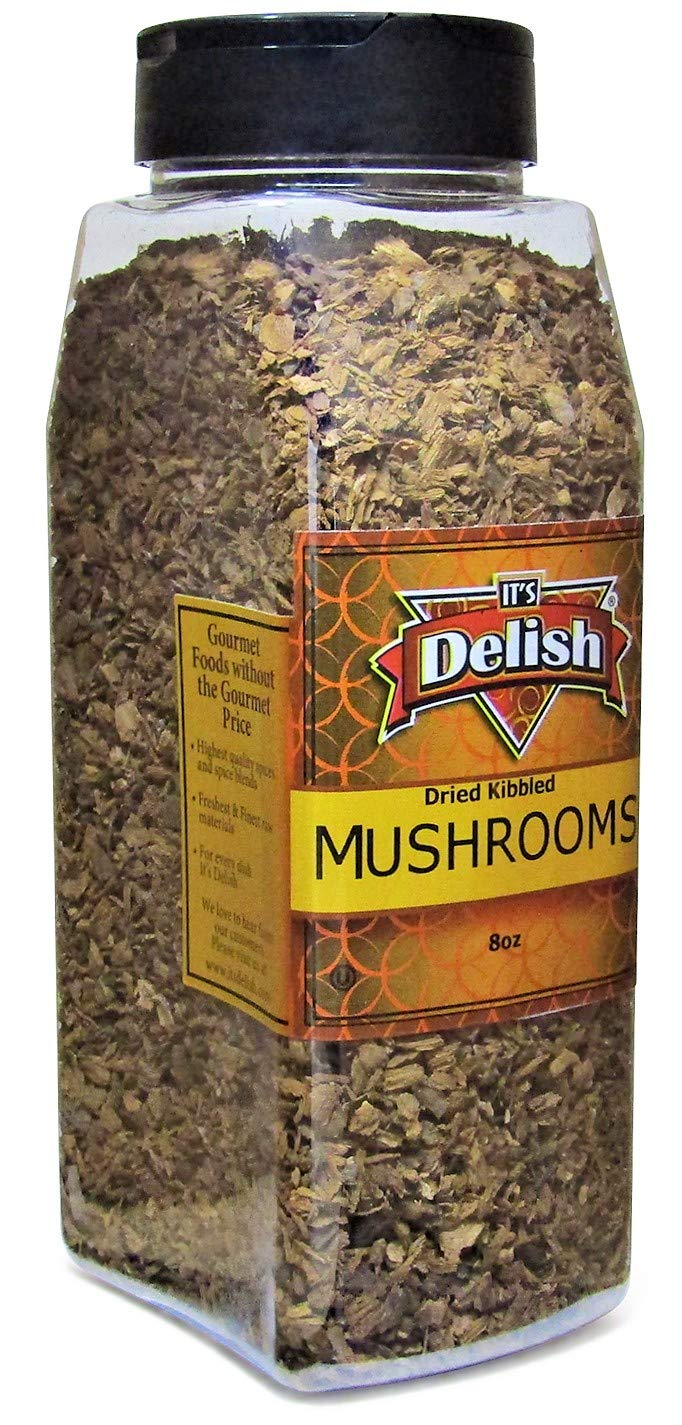 Dried Kibbled Mushrooms by Its Delish Boletus Luteus mushrooms is a wild-grown dark mushroom with a deep and earthy flavor, commonly called the brown or Chilean mushroom, sorted, washed, trimmed, and air-dried. There are a good source of vitamin, minerals and protein. These are 100% all-natural with no added ingredients or preservatives. These chopped mushroom flakes are used in a wide variety of applications for rich-flavored mushroom for including sauces, gravy, soups, vegetable stock, broth and stews, pasta products, meats and sausages, seasoning blends, salad products, pot pies, and casseroles and ready meals. Prep Instruction Ideas: Add these mushrooms while slow cooking soups, stews, sauces, casseroles and other foods with sufficient liquid content. In other applications, hydrate by using 1 part dried mushroom and 5 parts water. Simmer for 10-15 minutes. Add water if necessary. Yields — 1 oz equals about 1/2 cup dry. Generally, air dried vegetables double in volume when hydrated. Dry/Fresh Ratio — 1 lb of air dried boletus luteus mushrooms, once rehydrated, equals approximately 6 lbs of fresh prepared boletus luteus mushrooms. Storage Suggestion — Best if used within 18 months. Store tightly sealed in a dry location away from sunlight. Tip: For ready to use mushrooms, soak the dry mushrooms in a sealed container and store in the refrigerator. Stock up and enjoy! About It's Delish!It's Delish was established in 1992 and is located in North Hollywood, California. It's Delish is a food manufacturer and distributor who produces over 500 gourmet food products including licorice, sour belts, taffies, caramels, Jordan almonds, chocolates, nuts, fruits, trail mixes, spices, and the spice blends. It's Delish also produces organics and all-natural products. We give you the opportunity to order from the factory direct!