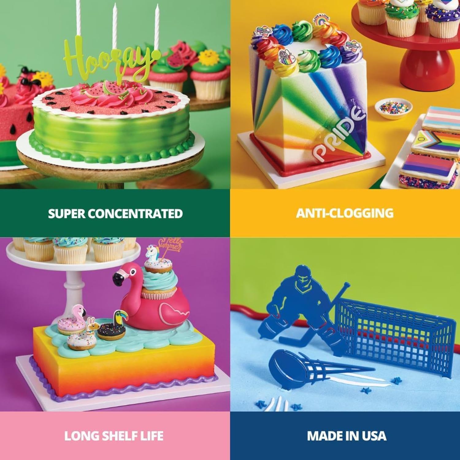 Bakery Crafts Premium Airbrush Food Coloring, 12 Bottle Assortment, 3.6 Fl Oz, Edible Paint For Use With All Airbrush Kits - Cake Decorating, Food Painting, Frosting, Red, Orange, Violet (Purple),Pink, Yellow, Green, Blue, Black, Gold, Silver, Rose Gold, Metallic Shimmer - 12 x 0.6FL OZ Vibrant And Long Lasting Edible Airbrush Color Turn plain cakes into bright, eye-catching creations with Bakery Crafts Airbrush Food Coloring from DecoPac. Delivers Intense shades and color consistency every time. These easy-to-use airbrush colors are compatible with most airbrush decorating kits for adding dazzling effects to your cakes, icings, and cake decorations. Suitable for use with fondant, gum paste, and more! Versatile and vibrant colors can also be added to frosting or confections or used as an edible paint for cake decorating, kids activities, egg painting, cookie decoration, or to color cake toppers and decorations. Long-lasting and easy to store.Massive Mixed Color Multi Pack Set contains 12 Air-Brush Colors in our most versatile and popular colors including metallic shimmer colors! Super Red, Blushing Pink, Sunset Orange, Canary Yellow, Spring Green, Hawaiian Blue, Royal Blue, Violet, Midnight Black, True Silver Shimmer, True Gold Shimmer, and Rose Gold Shimmer. Ideal as a starter set if you're just starting baking and cake decorating or if you're making a special birthday, graduation, Christmas, Quinceañera, or celebration cake!Long-lasting and easy to store these 0.6 Fluid Ounce (18ml) bottles take up less space in the cupboard and give more color and more choice!Made in the USAGive Your Cakes a Professional Touch - The extensive Bakery Crafts range of food coloring and cake toppers has everything you need from gels, to edible paint, sprays, and ready to use cake toppers.