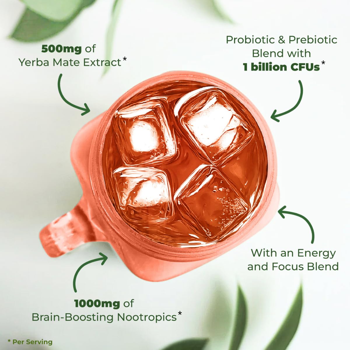 | Product Benefits | Clean energy from yerba mate, Convenient instant drink powder, Easy to mix and enjoy anytime, Includes probiotic and prebiotic ingredients, Supports digestive health, Supports focus and mental clarity |