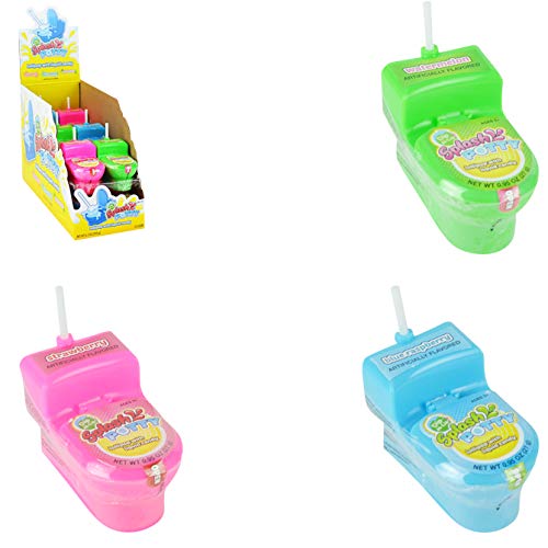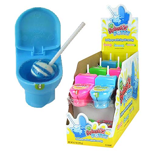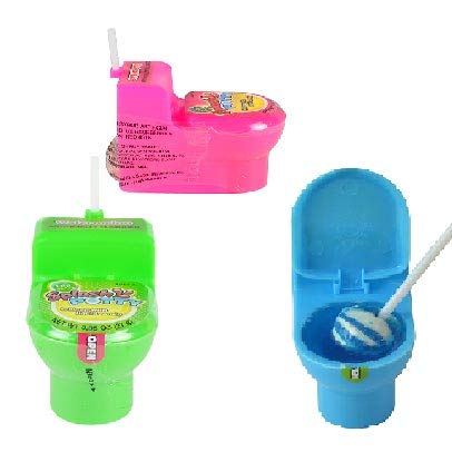 This is the splash from the potty that will be satisfying. This potty is filled with yummy splash (liquid gel) candy and includes a lollipop for Dip-N-Lik fun! Comes in three fun colors: Pink, Blue, & Green. Flavors: Strawberry, Blue Raspberry, Watermelon