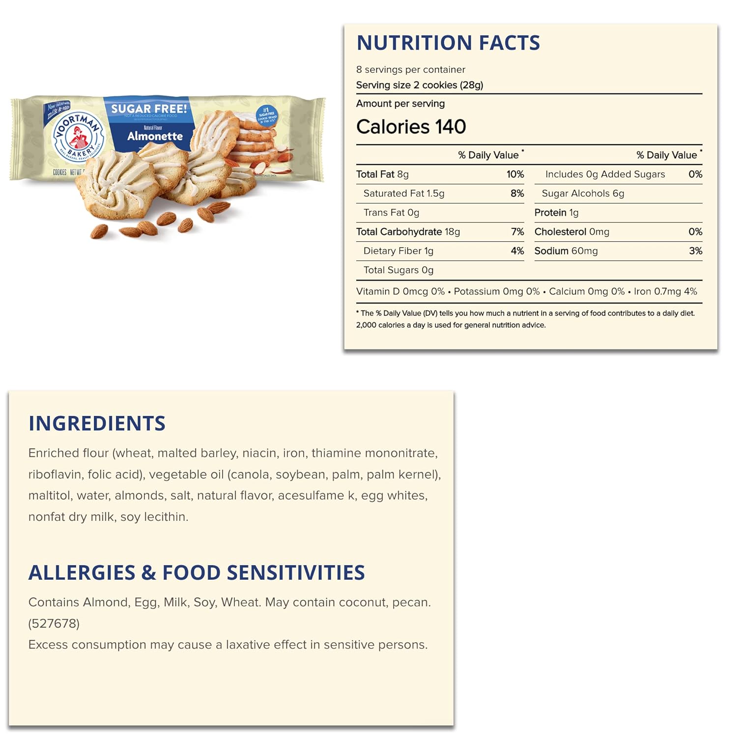 Voortman Sugar Free Cookies - Variety Pack - Oatmeal (3, 8oz packs) - Iced Almonette (1, 8oz) - Pecan Shortbread (1, 8oz) - Made with Real Ingredients - 6 Packs Total Voortman Sugar Free Iced Almonette Cookies (1, 8oz pack) Voortman Sugar Free Oatmeal Cookies (1, 8oz pack) Voortman Sugar Free Pecan Shortbread (1, 8oz pack)