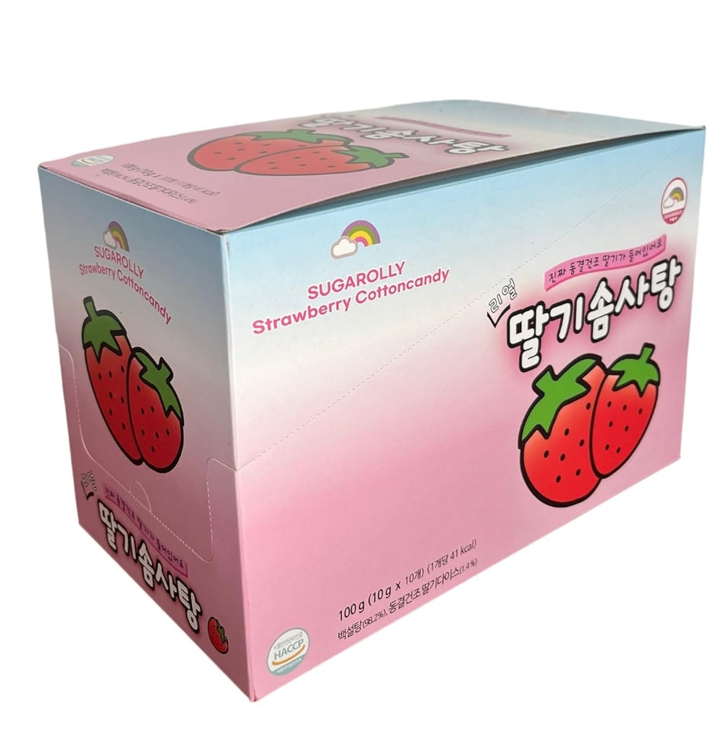 Aromatic real strawberry cotton candy with freeze-dried strawberries inside, offering a refreshing and sweet strawberry flavor Individually wrapped cotton candy is perfect for birthday parties, goodie bag, classroom prizes, office parties, showers, and more. Multi-layer moisture foil bag / air-tight provides maximum protection, enjoy the cotton candy all year around. Stored in a well-ventilated and dry place. HACCP Certified Nutrition Facts - 10g (.35 oz) / pack : Total 41 kcal Ingredients: White sugar, Freeze-dried strawberry pieces, Natural flavors (strawberry flavor), Natural coloring agent (red beet extract)