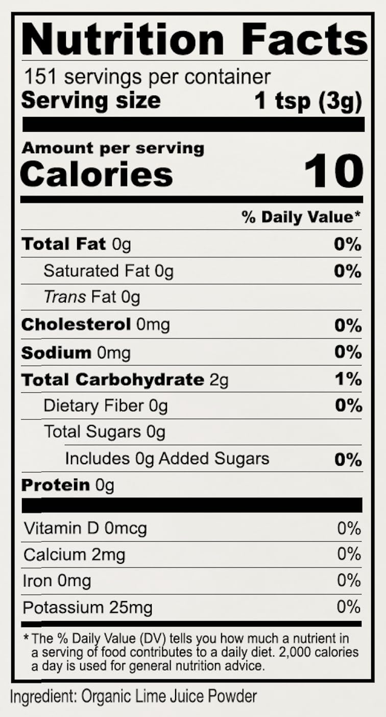 Say hello to the zingy star of your pantry... Organic Lime Juice Powder! Made from fresh, juicy limes, this powder brings all the bright citrus flavor without the mess or hassle of squeezing. Carefully freeze-dried to preserve its taste and nutrients, it’s ready to elevate any dish or drink with a burst of lime. Add some squeeze-free zest to your kitchen creations today! Our Organic Lime Juice Powder is perfect for cooking, baking, or even refreshing beverages. This powder adds a zesty twist to sauces, marinades, dressings, guacamole, smoothies, and more! Sprinkle it over fruit, stir it into baked goods, or mix it into dry rubs for a bold flavor kick. Anthony’s Lime Juice Powder is Organic, Non-GMO, Gluten Free, Unsweetened, and Freeze-Dried.