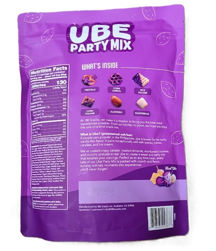 UBE part mix is a vibrant purple, sweet & crunchy snack that combines cereals with roasted almonds and pretzels for a perfectly balanced treat to satisfy any craving.