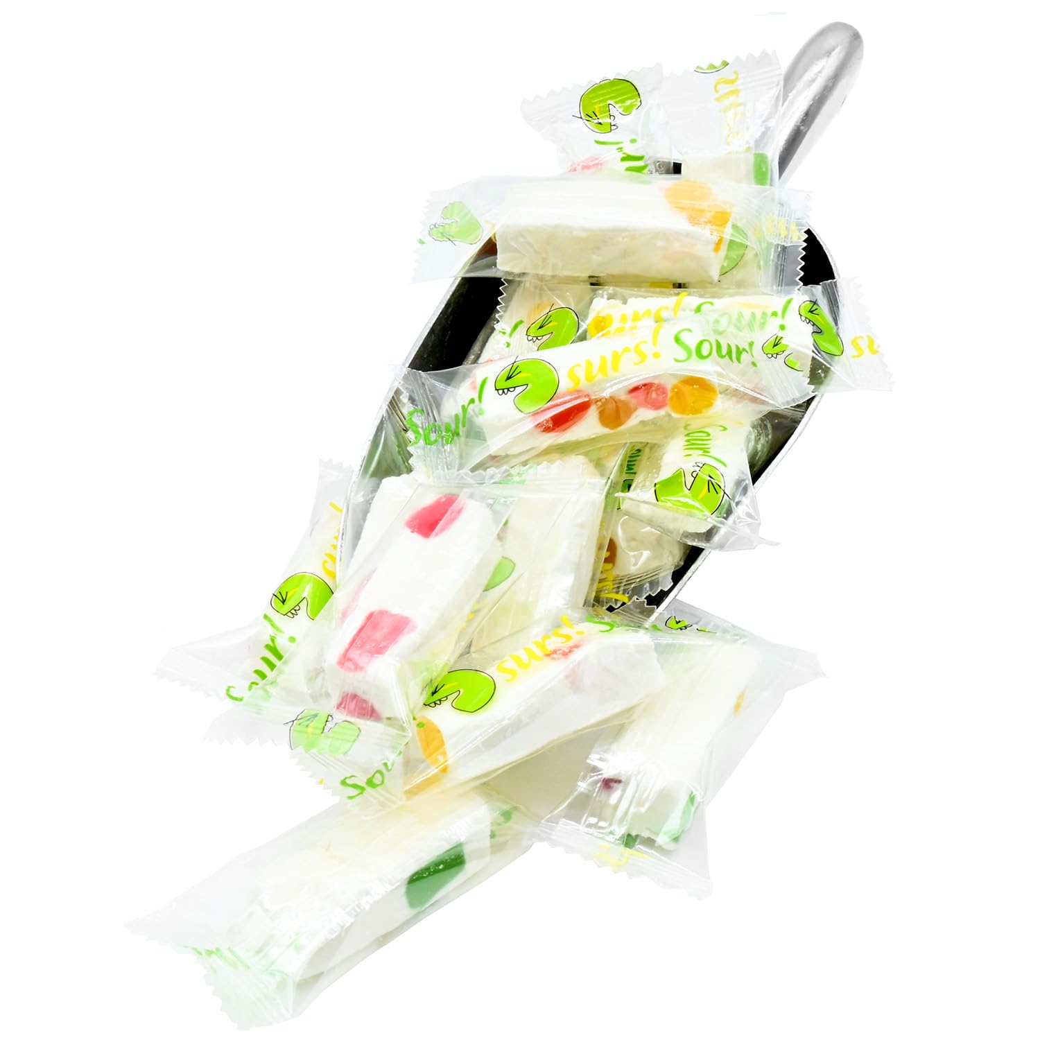 Discover the unique fusion of flavors in our Sour Jujube Nougat, where tangy meets sweet in perfect harmony. Each individually wrapped piece features a creamy nougat base decorated with colorful dots, promising a delightful taste experience. The chewy texture combines with the distinctive sour jujube flavor to create a memorable treat that will keep you reaching for more. These bite-sized confections are ideal for satisfying your sweet cravings, sharing at gatherings, or keeping in your candy dish. The convenient single-serving packaging ensures freshness and makes it perfect for on-the-go snacking. Experience the unique combination of sweet nougat infused with the fruity, slightly sour notes of jujube in every piece. Whether you're a candy connoisseur or simply looking for something different to satisfy your sweet tooth, these nougat treats offer an exciting twist on traditional candy that's sure to please.