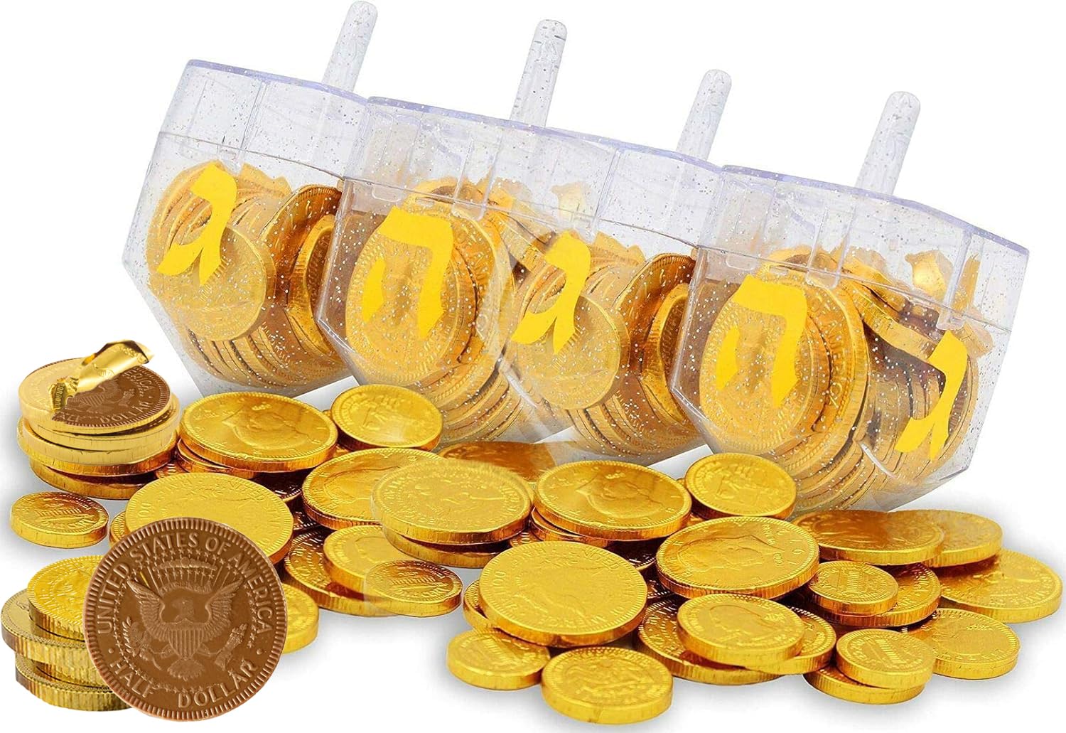 Dreidel Filled with Hanukkah Coins Gelt, Hanukkah Dollar Coins, Chanukah Gelt, Kosher These Dreidels Filled with Hanukkah Gelt add Fun and Atmosphere to your Party that will leave Good Memories to all your Guests. They are a Great Addition to your Chanukah Party, Money Themed Party and as Decoration for every event! The Dreidel Filled with Gelt Coins are the perfect addition to any Party. All your guests will enjoy seeing them as decorations, playing with them, and eating them! They are wonderful for Office Celebrations, Birthday Parties, Carnival Prizes, Classroom Rewards, Goodie bag Fillers, Gatherings, and much more! The Dreidel Filled with Hanukah Gelt Coins includes a Clear Silver Glitter Dreidel Candy Container (Size: 3.5In X 2In) With Symbols Of Nun, Gimel, Hay, Shin, And Chanukah Gelt Gold Coins 1.5Oz. They come in a Single-pack, 2-Pack, and 4-Pack