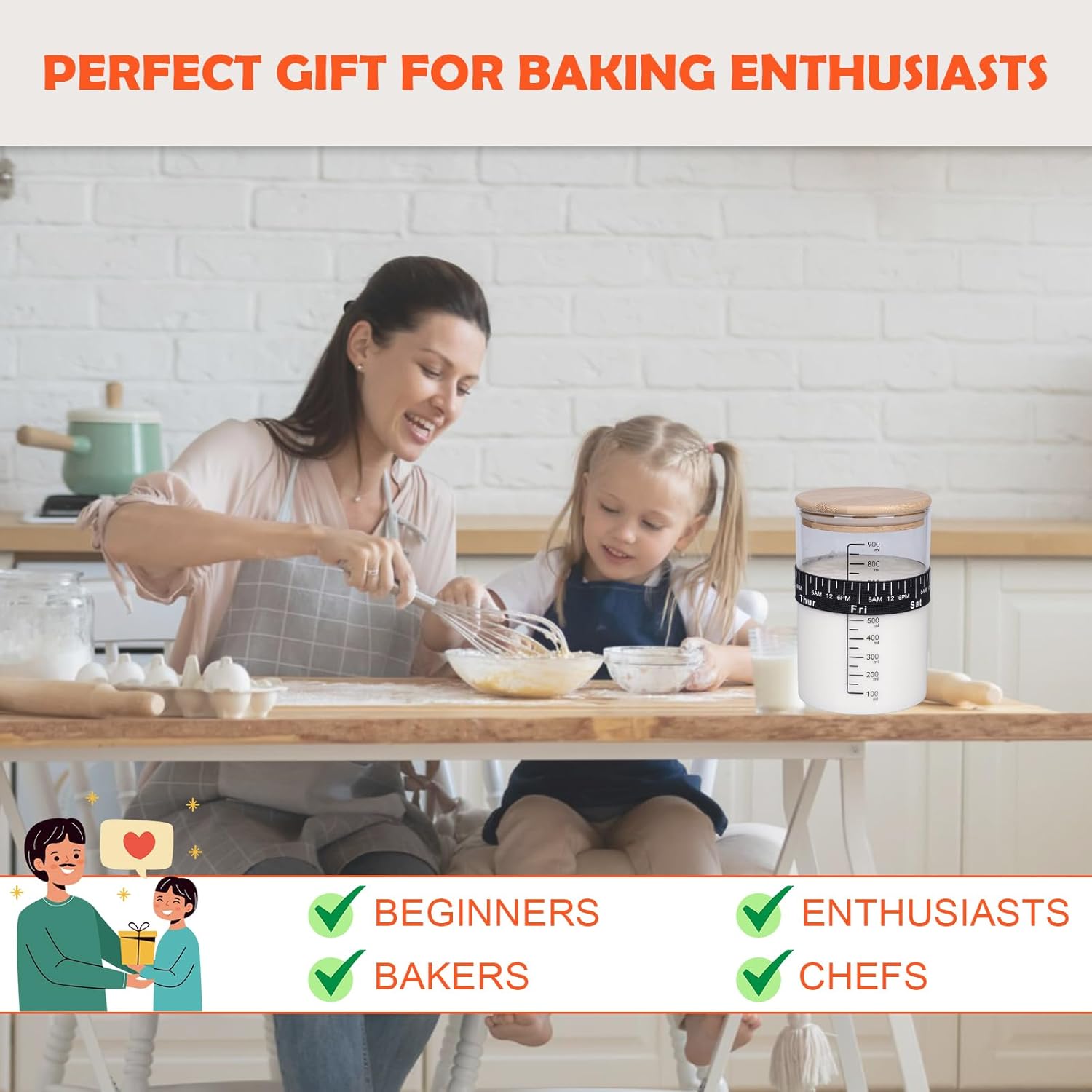 | Included Components | Feeding Time, Level Tracker, Recipe book, Sourdough starter jar, Thermometer Band |