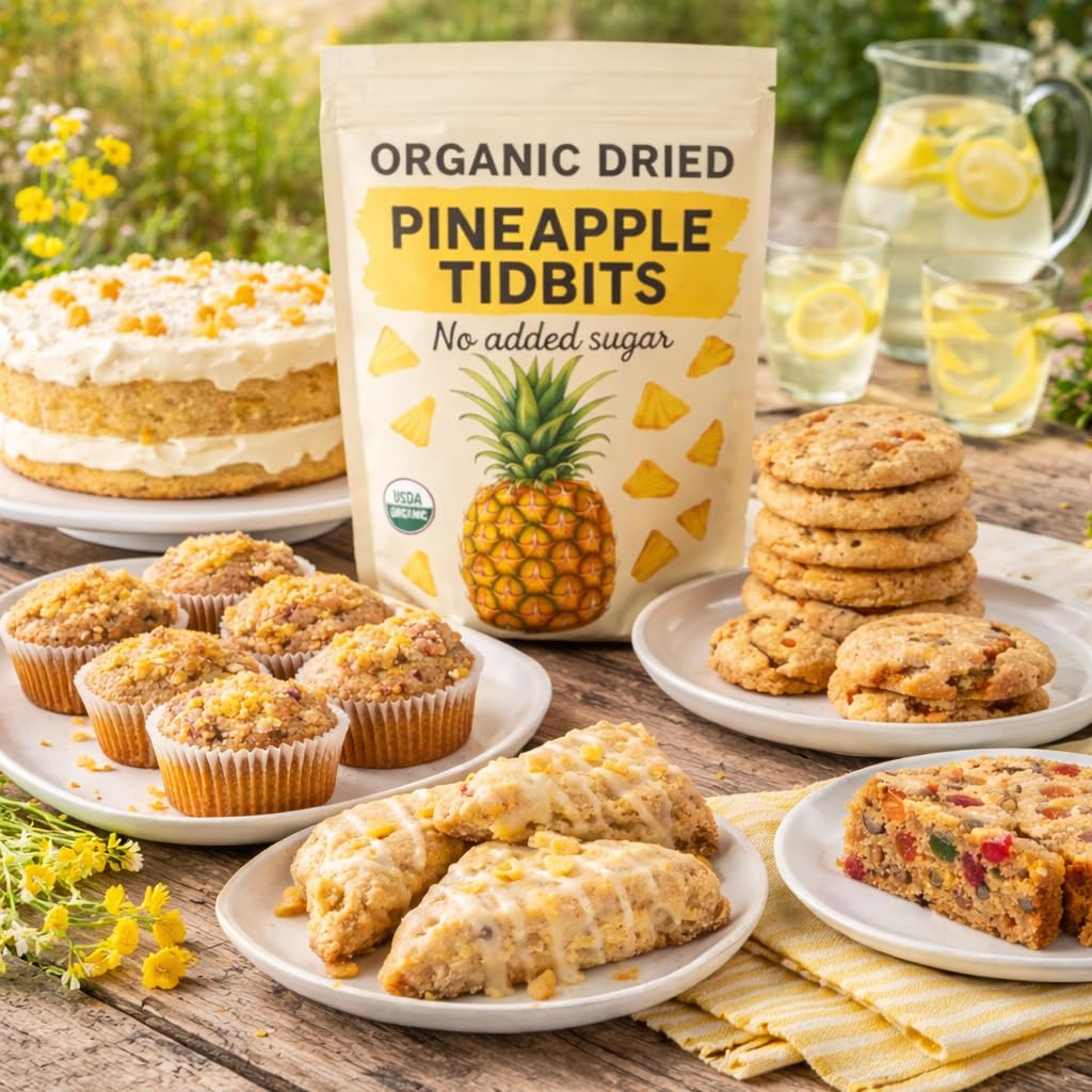 Clean, naturally sweet, and carefully prepared, these Organic Dried Pineapple Tidbits bring simple tropical flavor to both snacking and cooking. Made from organically grown pineapple and gently dried without added sugar or sulfites, they offer a pure fruit experience with dependable texture and taste. The resealable 26-ounce bag provides lasting freshness and everyday convenience, while the versatile tidbit size fits seamlessly into meals, recipes, and on-the-go routines. A pantry staple designed for mindful living and consistent enjoyment.