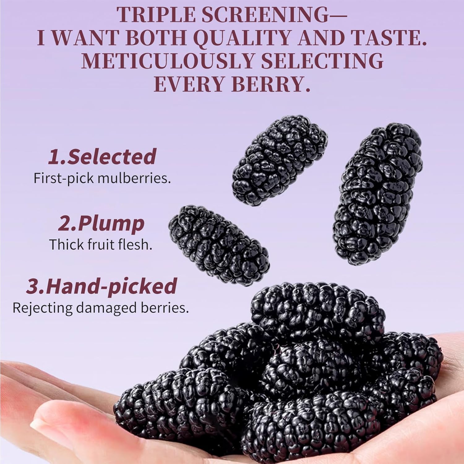 [Naturally Sweet, Carefully Selected]: Handpicked from sun-soaked fields with clean water and rich soil, our mulberries are naturally sweet and plump, measuring 2–2.5 cm with plump flesh. Sun-dried with no sulfur, no preservatives, and no added sugar – a wholesome snack for both adults and small friends.