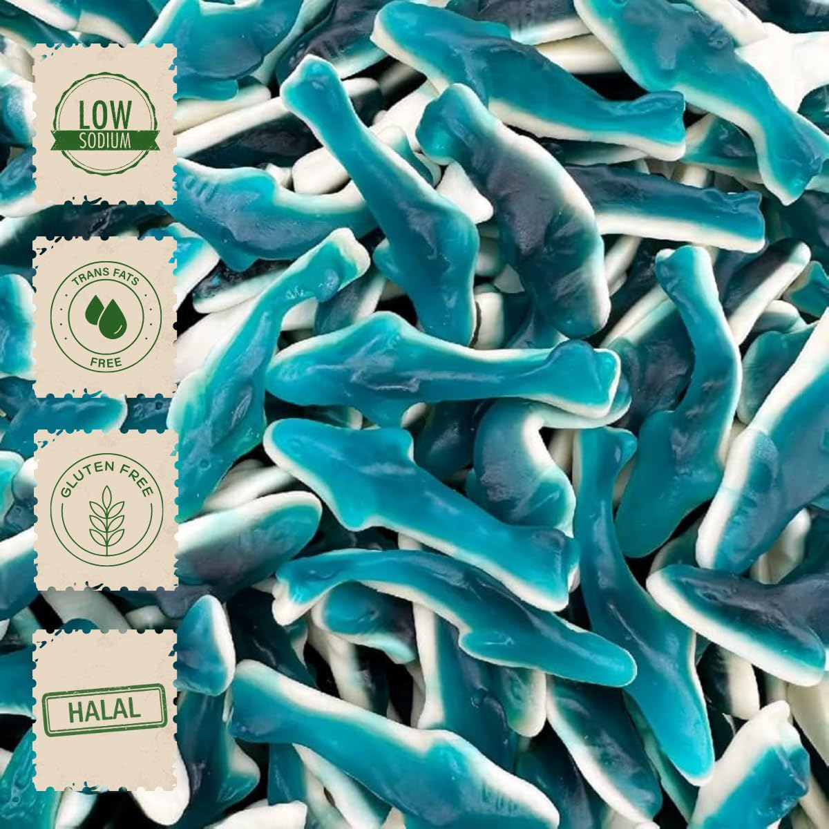 Dive into sweetness with Blue Sharks Gummy Candy, a fun mix of fruity blue raspberry and creamy vanilla flavors that make every bite unforgettable. Each 5-pound bag is packed with colorful, soft, chewy gummy sharks — perfect for ocean-themed parties, candy buffets, dessert decorating, and gift bags. These gummies deliver the perfect balance of fruity tang and smooth vanilla sweetness, making them a hit with both kids and adults. Use them to top cakes and cupcakes, fill candy jars, or serve as party treats that stand out on any table.