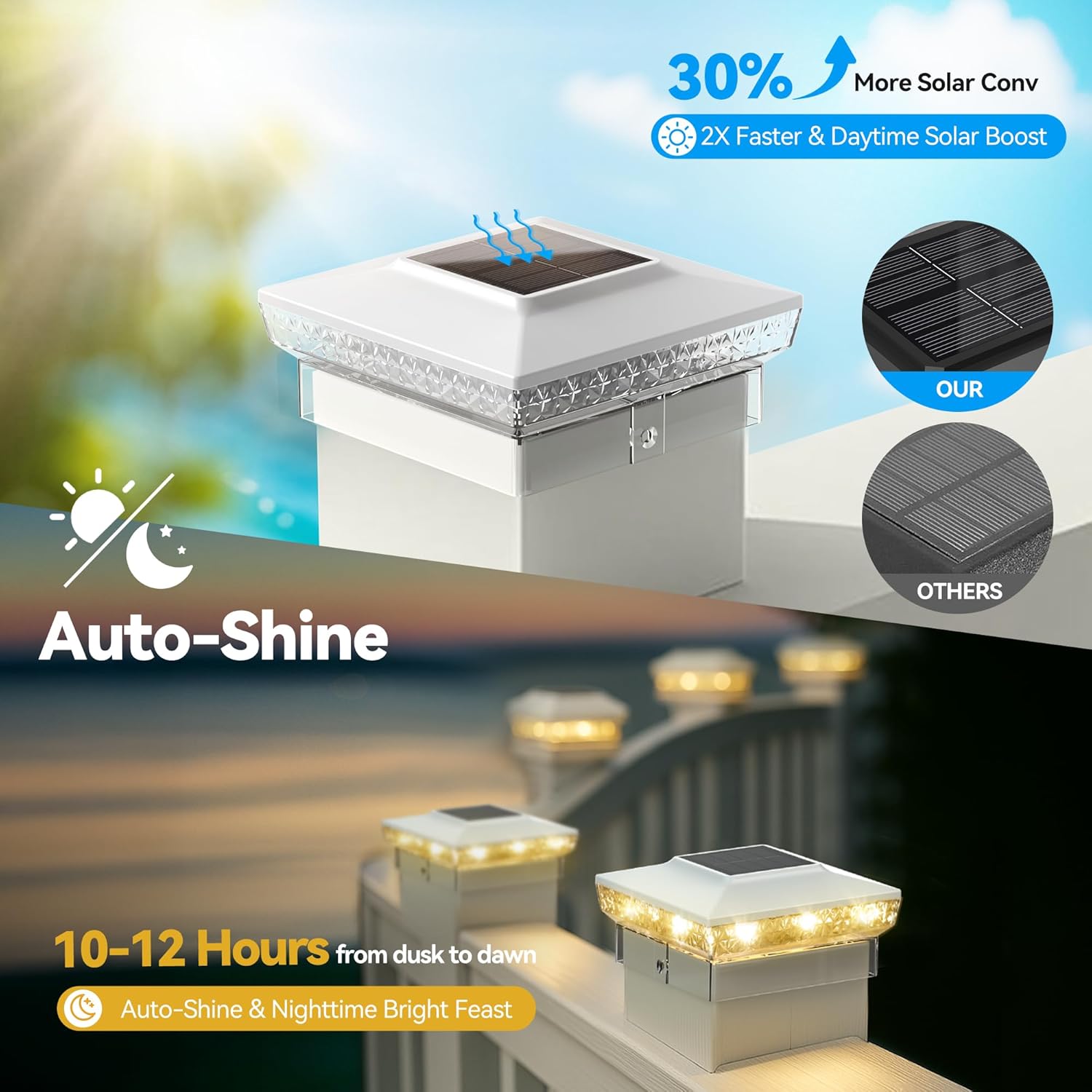 | Included Components | Adapter Bases (Per Lamp) * 2, Instruction Manual, Screws, Solar Post Cap Lights * 2 |