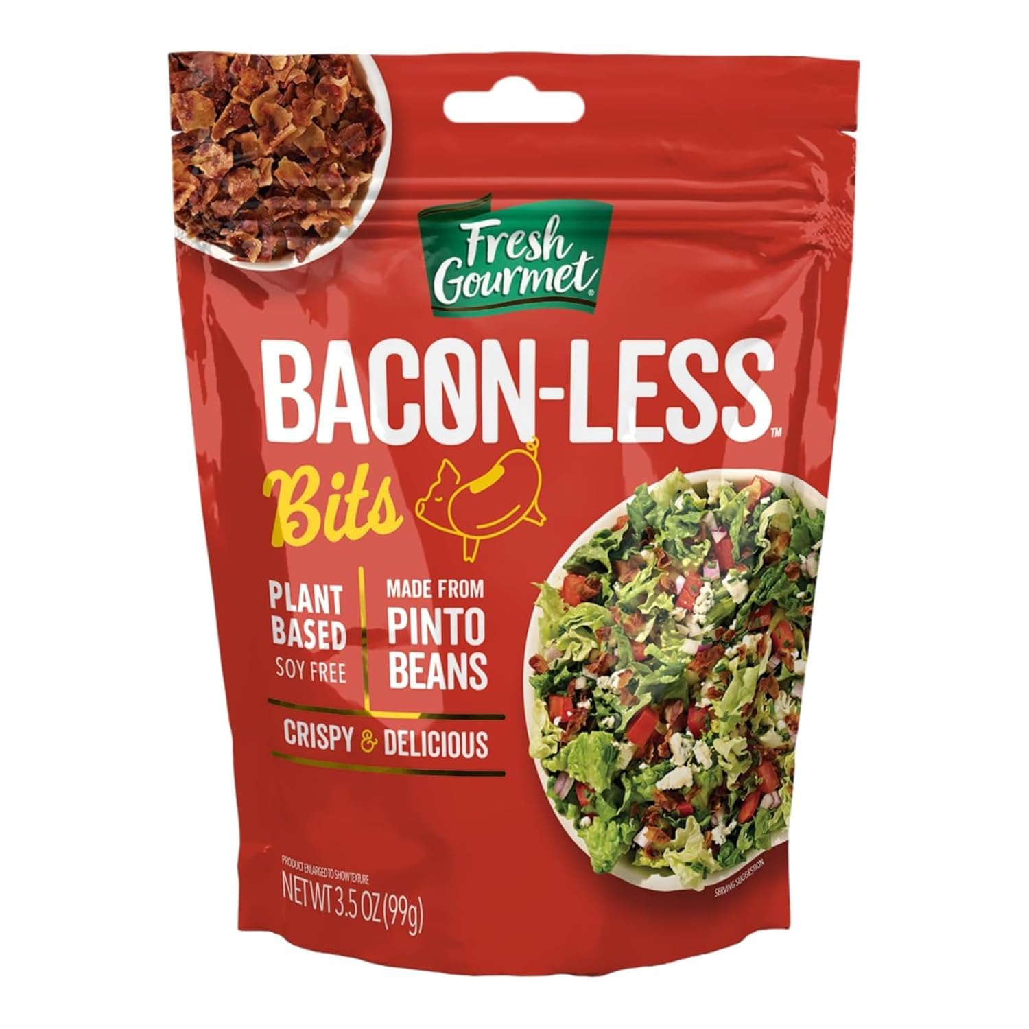 Fresh Gourmet Bacon Bits provide the flavor you know but now in plant based form. Made from pinto beans and deliver the perfect balance of sweet, salty and smoky flavor.