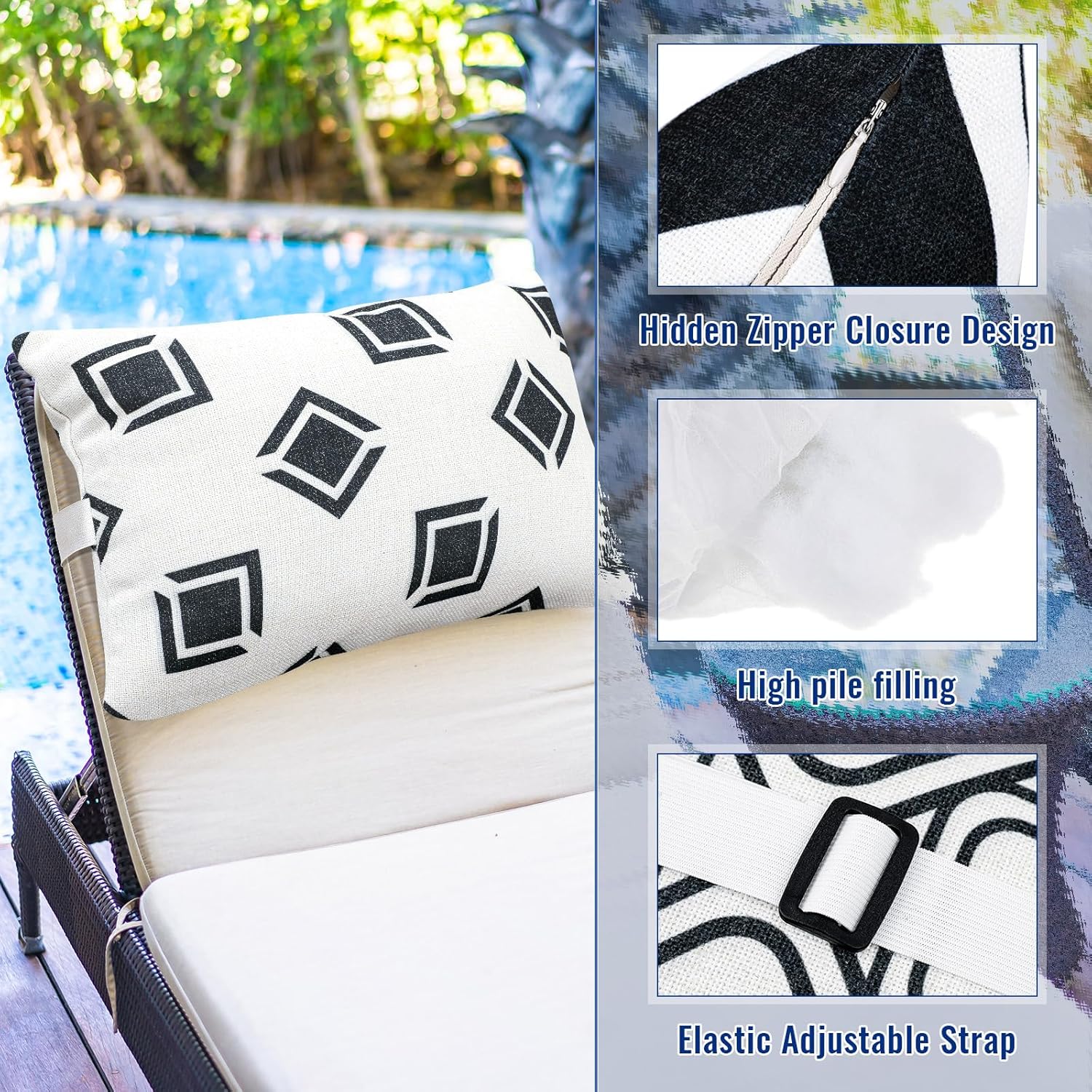 Features: Creative gifts: Our quality lounge chair pillows are available in sufficient quantity, making them an ideal gift for colleagues, clients, friends and family. Or you can share them with people around you as gifts for party events, etc. Specifications: Material: geometric fabric Color: as shown in the figure Size: 16.14 x 11.02 inch / 41 x 28 cm Package includes: 4 X Outdoor beach head resting pillow Notes: Manual measurement, please allow slight errors on size. The color may exist a slight difference due to different screen displays.