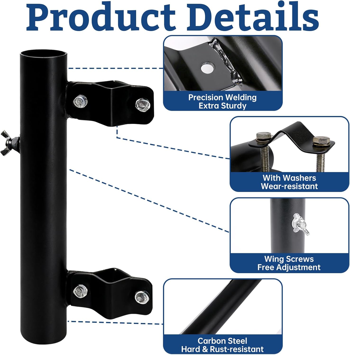RV Ladder Flag Pole Mount for Outdoor Trailer Product List: You will receive 1 rv flagpole(30.5 cm/ 12 in), 2 brackets, 4 long screws, 8 washers, 4 hex nuts and 1 swing screw. Product Features: Material: Made from carbon steel, the flagpole is sturdy and reliable. Adjustable RV Flagpole: This flagpole is compatible with most RV ladder by screw-tightened design, fits 1"-1.7" diameter poles for trailers. Used widely: The flagpole can be installed on RV ladder, is great for hanging the national flag, compatible with most RV, trailers, campers.