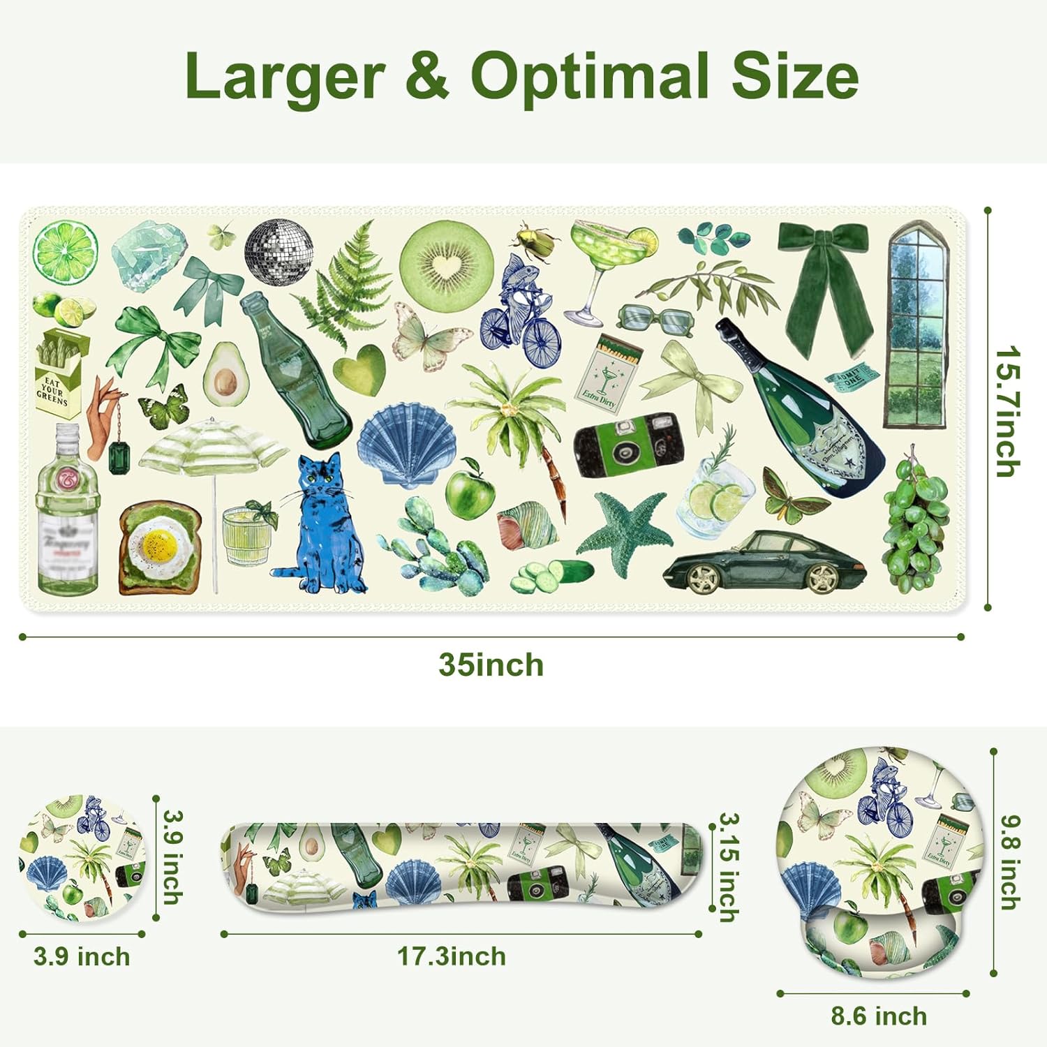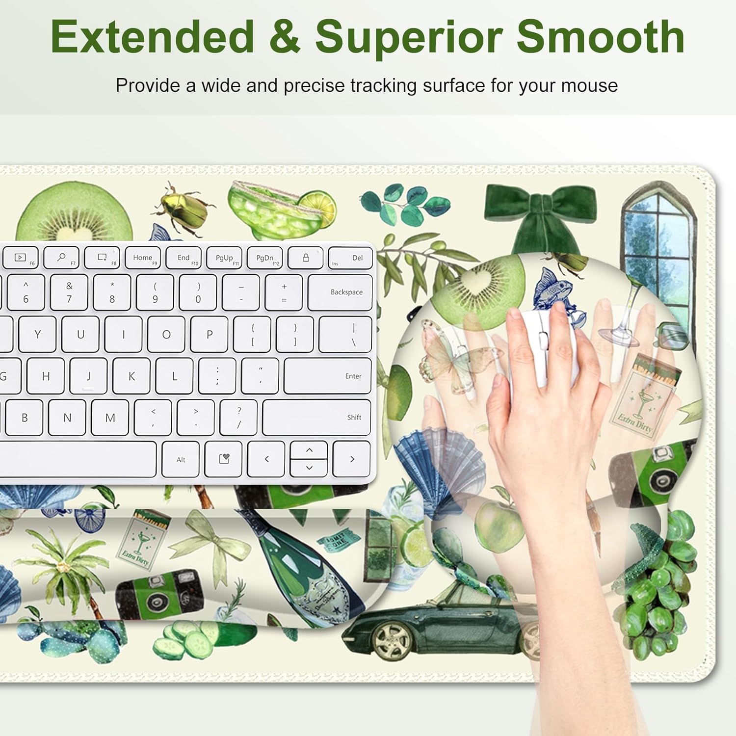 Gaming mouse pad+keyboard pad+mouse wrist support pad+coaster, 4 in 1 mouse pads for desk enhance your gaming/working experience.Feature:Ergonomic shape and just the right height keep your wrist in a natural position rather than a twisted angle.Non-slip textured bottom with the natural rubber material to prevent gliding or unnecessary movement.Memory foam structure, comfortable lightweight, and durable, with no deformation. Adopt soft and breathable materials to provide lasting support for your wrist.The sizes of keyboard wrist pad and mouse wrist pad fits most computers or notebooks. It is also helpful to avoid joint and wrist problems.