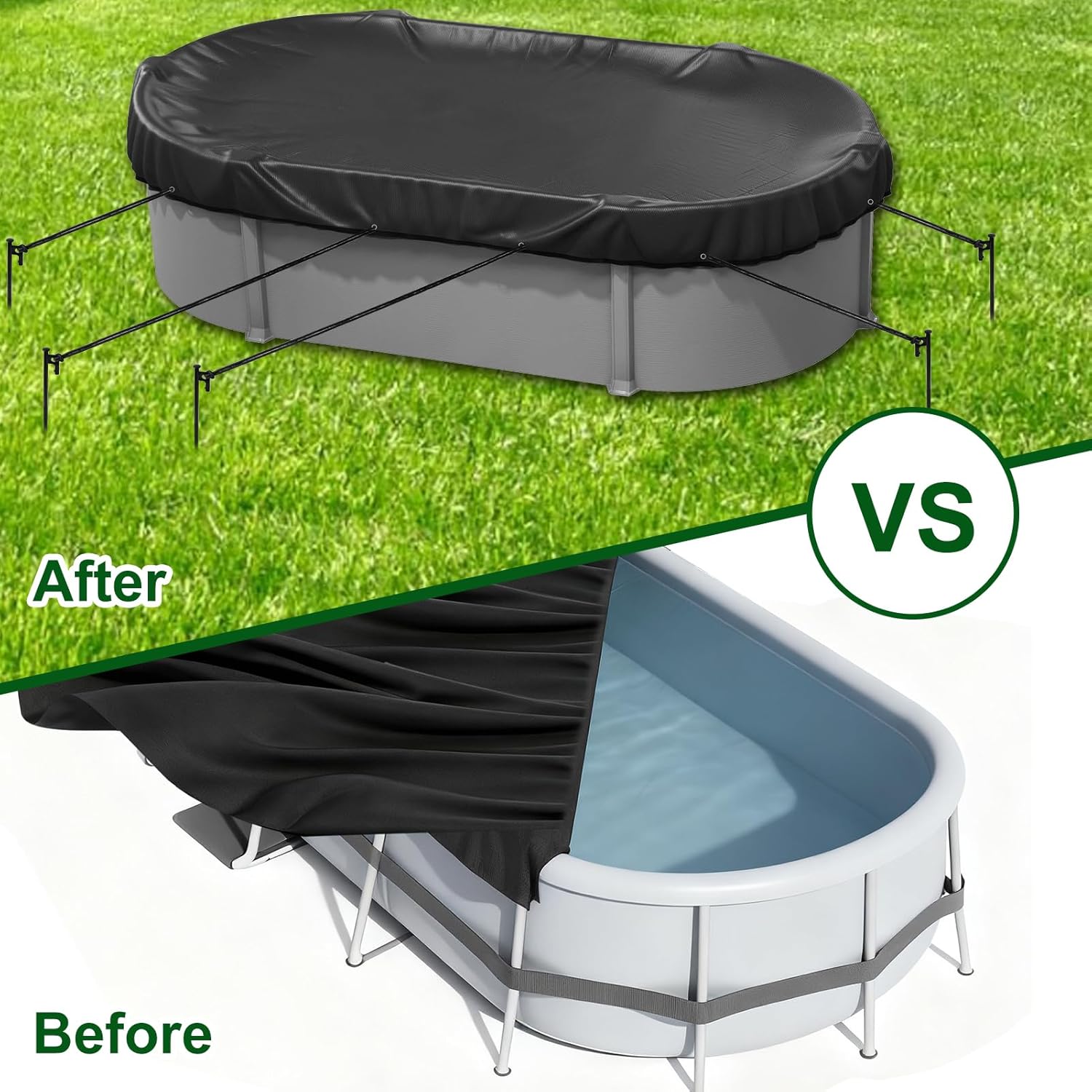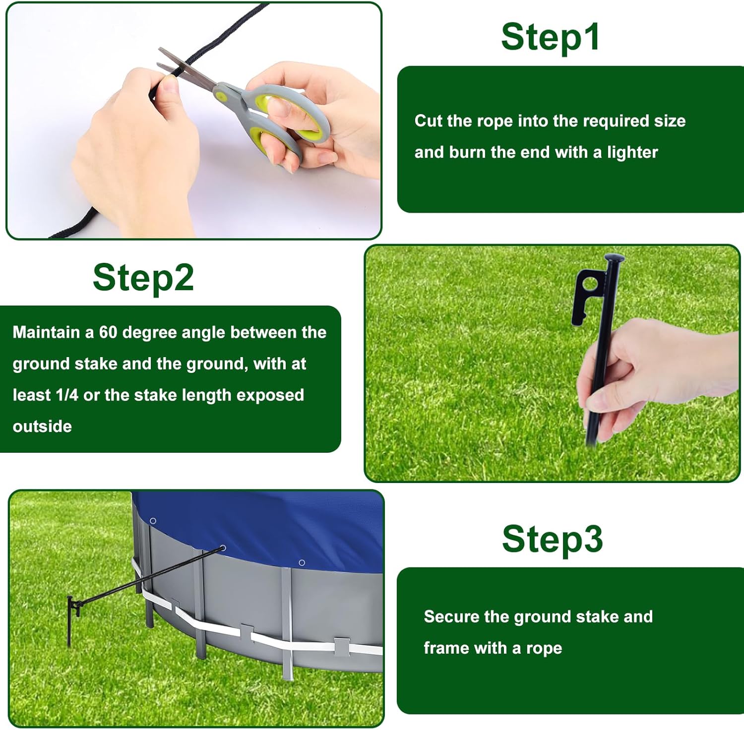 "Specification:Material:SteelSize: Stake: 9.8inch; Rope: 65.6 feet Color: BlackQuantity:8pcsFeatures:1.Our heavy-duty stake and rope kit firmly anchors your above ground pool to the ground, significantly reducing the risk of shifting, damage, or collapse during strong winds and unexpected storms.2.The stakes anchoring method distributes tension uniformly, preventing stress points and offering superior stability.3. The anchors are crafted from high-quality, rust-resistant steel, these ground stakes are designed for maximum durability and long-term use.Package included:8x Steel anchors1* 65.6feet Tie Down Ropes"