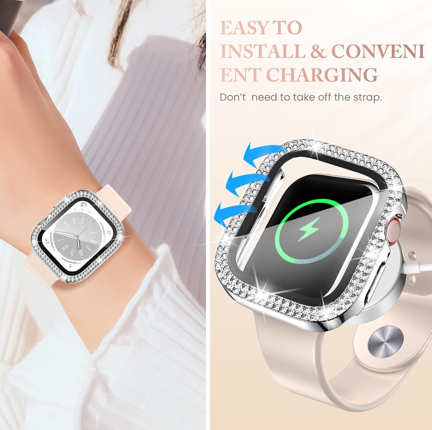 【Premium Bling Covers】 This apple watch case 45mm is inlaid with glitter rhinestones, matchs your watch perfectly, will give you get many compliments. 【Waterproof Case】The apple watch case use waterproof treatment, effectively prevent moisture in daily life from entering between the case and the watch screen, not affect your iWatch touch sensitivity. Fits for most kinds of indoor and outdoor sports. 【Glitter Double Rhinestones Case】 Double sparkly rhinestones are inlaid on the watch mask, and the iwatch cover adopts special electroplating technology to make your watch looks more different, will give you get many compliments. Fashionable & durable, perfect for work and dressy occasions. Multiple watch cases to meet your daily needs.